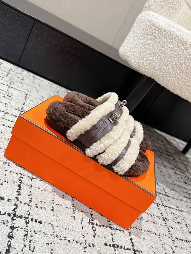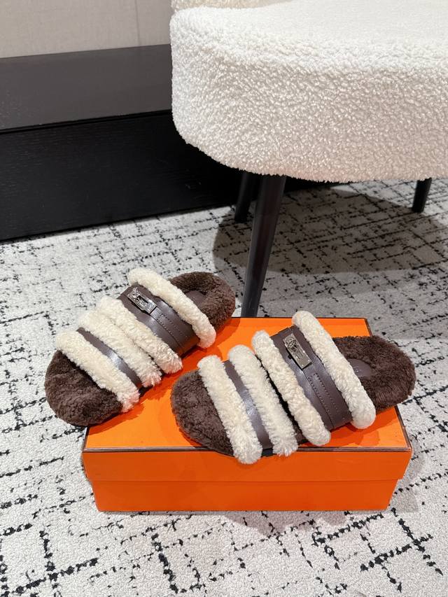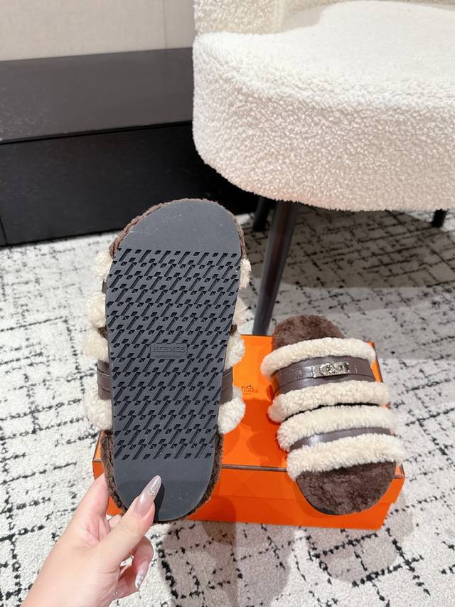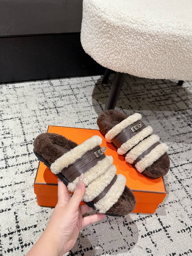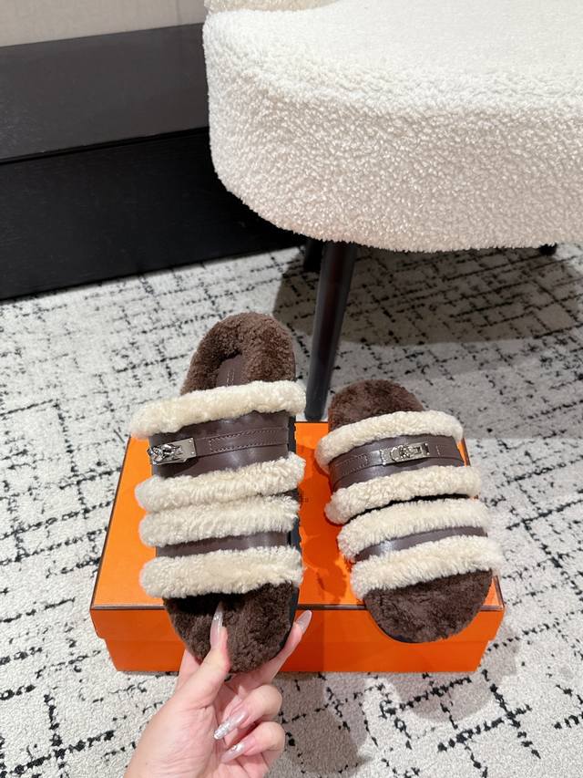 Hermes爱马仕 25 最新秋冬Kelly 毛毛拖 DDD 超级百搭好看时髦 超多明星网红种草 秋冬必备 DDD 随意舒适高级感 DDD 鞋面: 牛皮 羊毛 DDD 内里: 进口羊毛里 DDD 垫脚: 迸口混种羊皮 DDD 大底: Tpu防滑耐磨大底 DDD Size:#35-41 40.41定做不退换 DDD