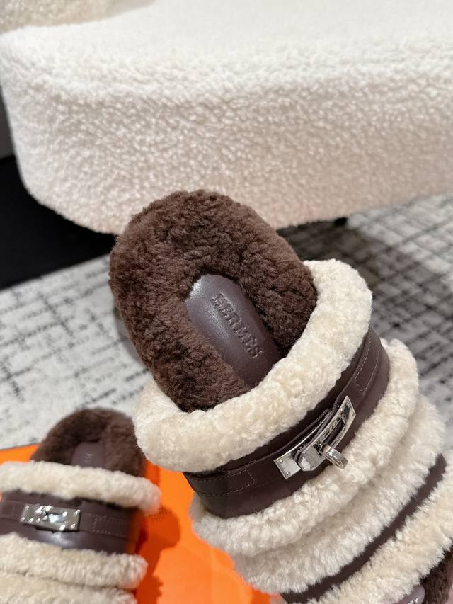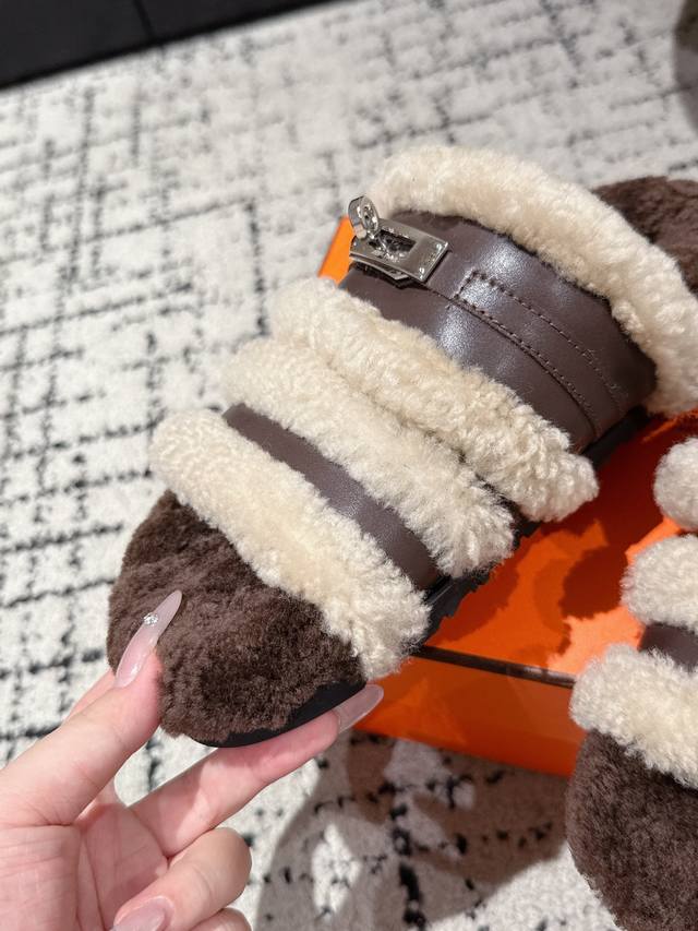 Hermes爱马仕 25 最新秋冬Kelly 毛毛拖 超级百搭好看时髦 超多明星网红种草 秋冬必备 随意舒适高级感 鞋面: 牛皮 羊毛 内里: 进口羊毛里 垫脚