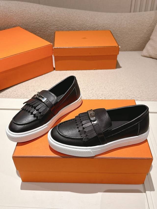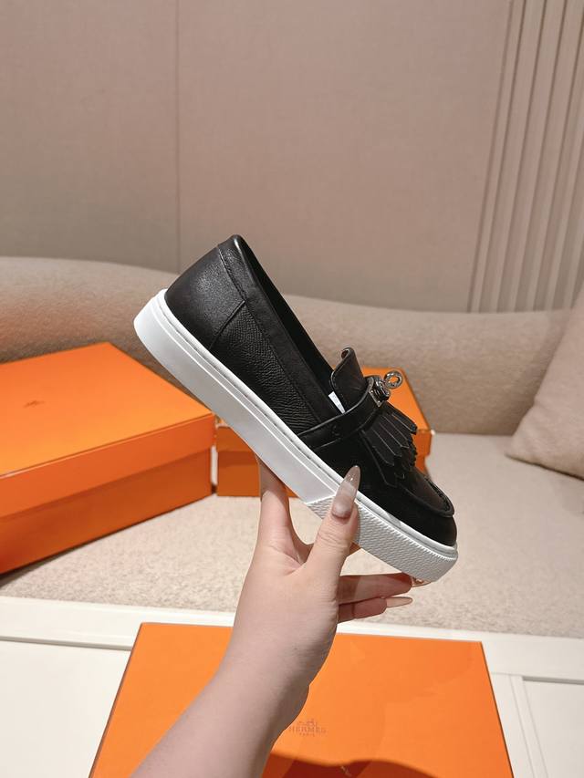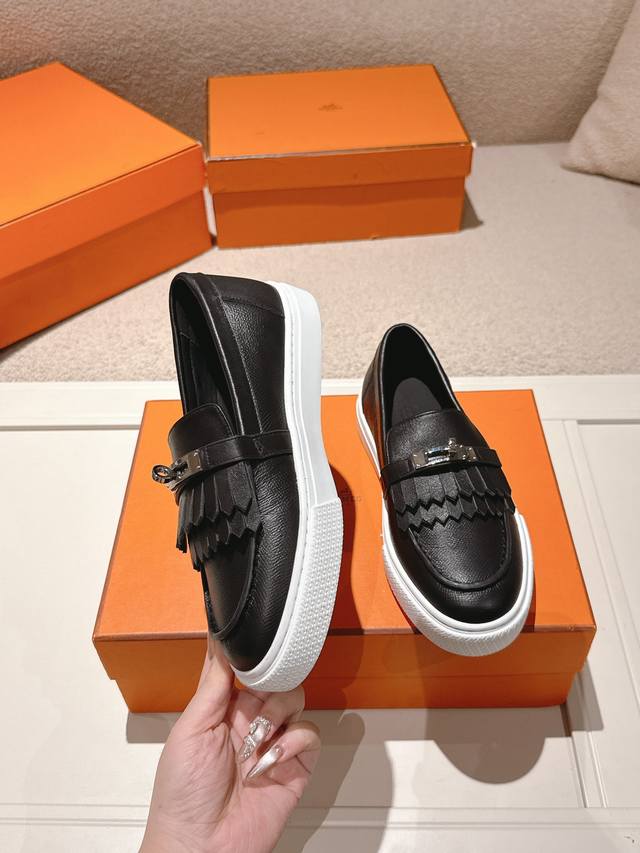 Hermes#限女码 新款Kelly扣厚底乐福鞋 鞋面:牛皮 麂皮材质 内里:羊皮内里 大底:独家开模大底 码数:女码35-40