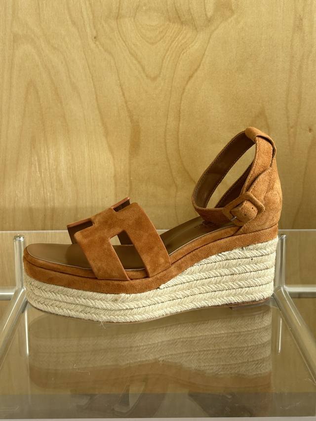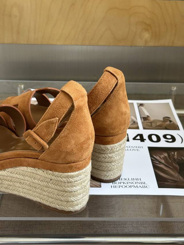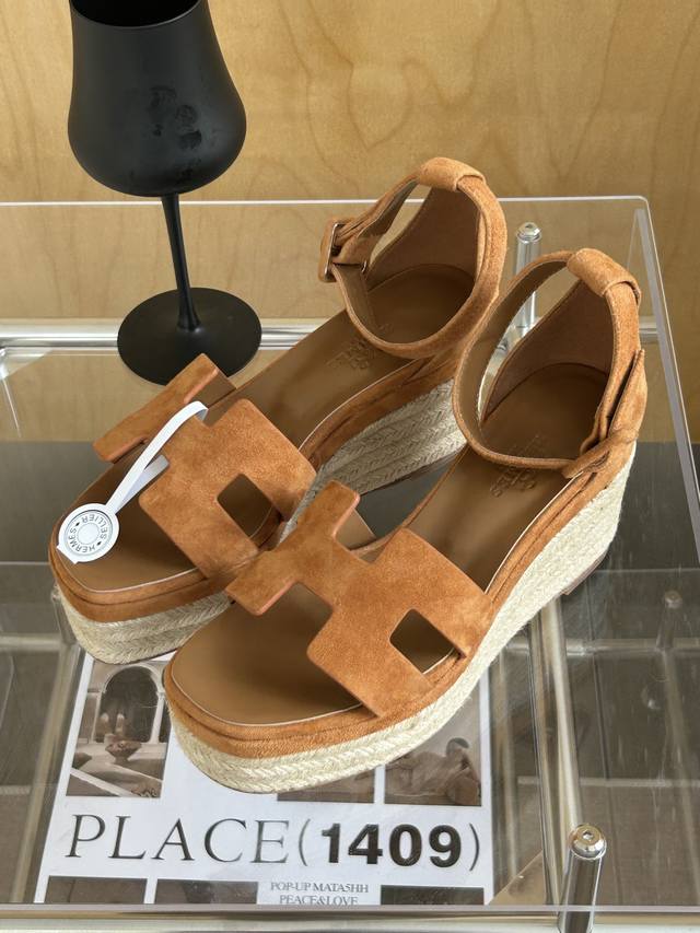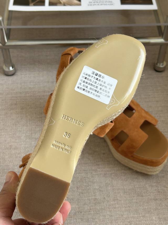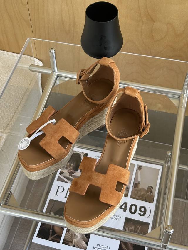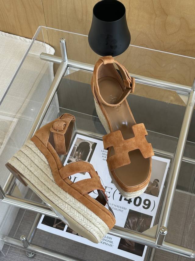 / Hermes 春夏新款Elda草编凉鞋 独家原版开发草编水台私模 万年经典百搭单品!纯手工制作顶级版本 欢迎对比 坡跟8.5Cm 水台高5Cm 鞋面小牛皮面料