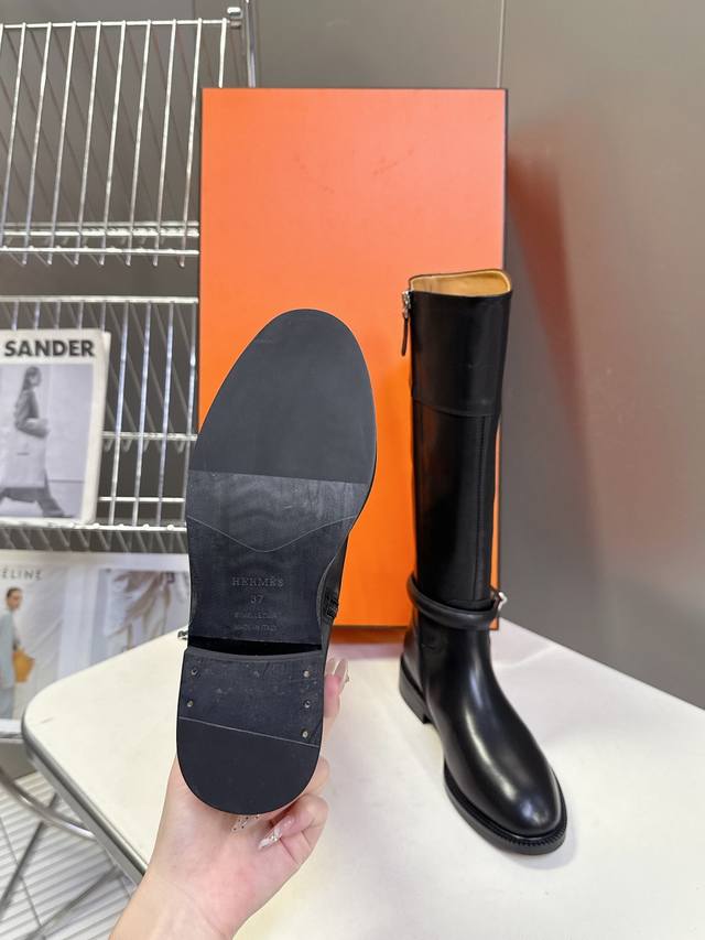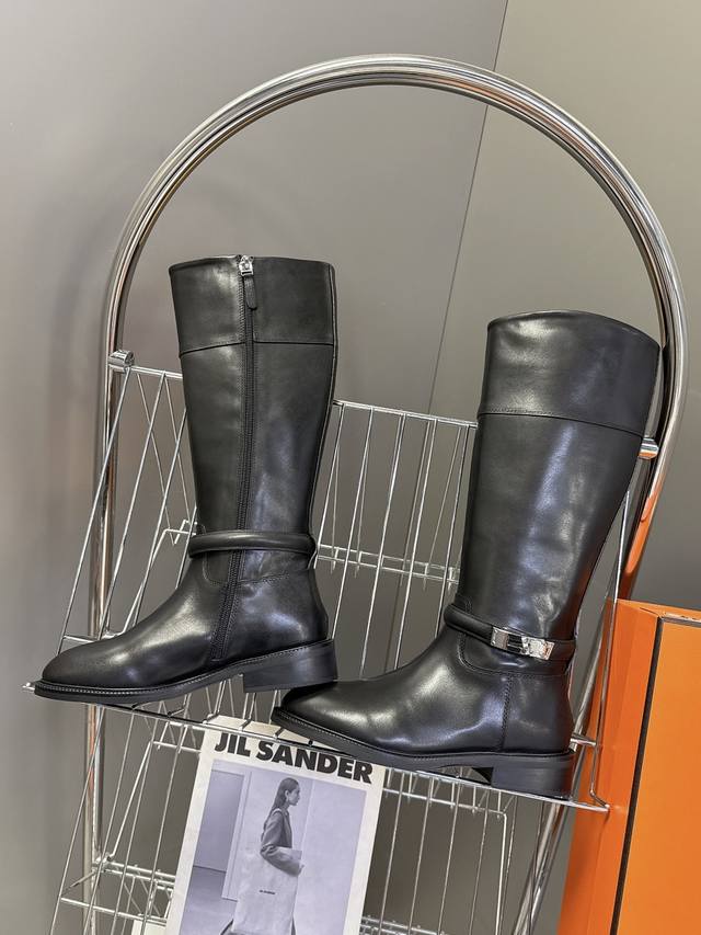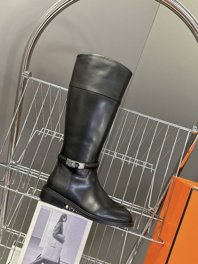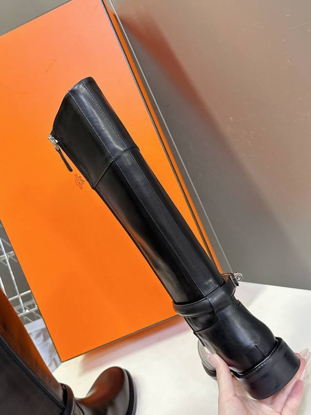 Hermes 爱马仕秋冬最新款老钱风长靴 DDD 专柜超难配货 家靴子的设计风格通常以经典简约为主 这款走秀靴打破传统设计风格 圆头设计风格配上时下最流行的型体