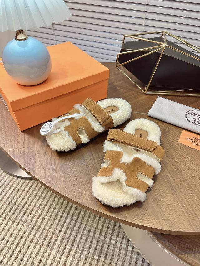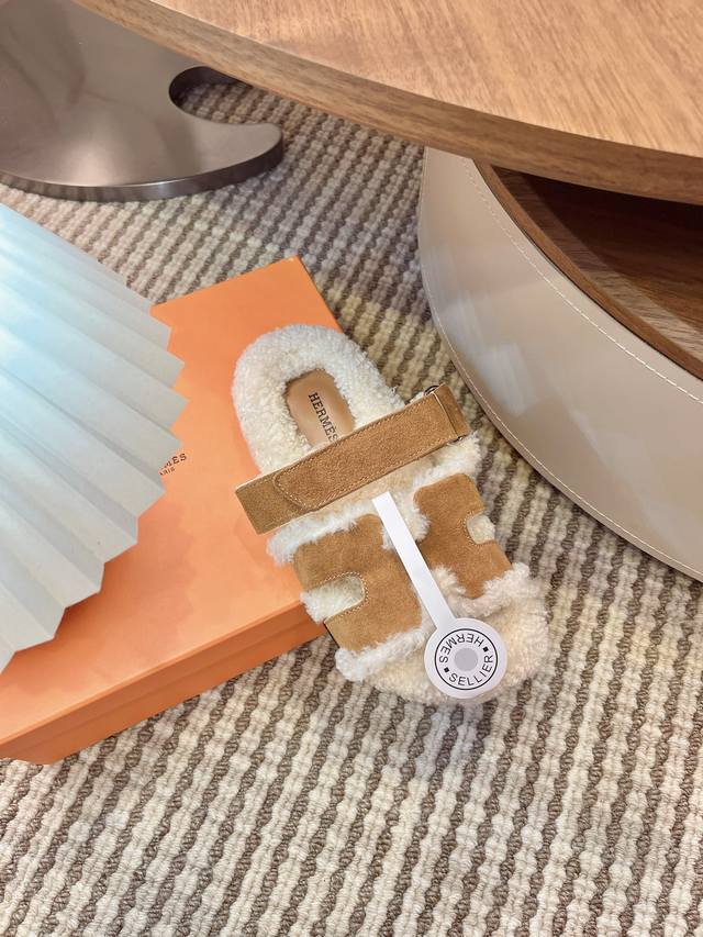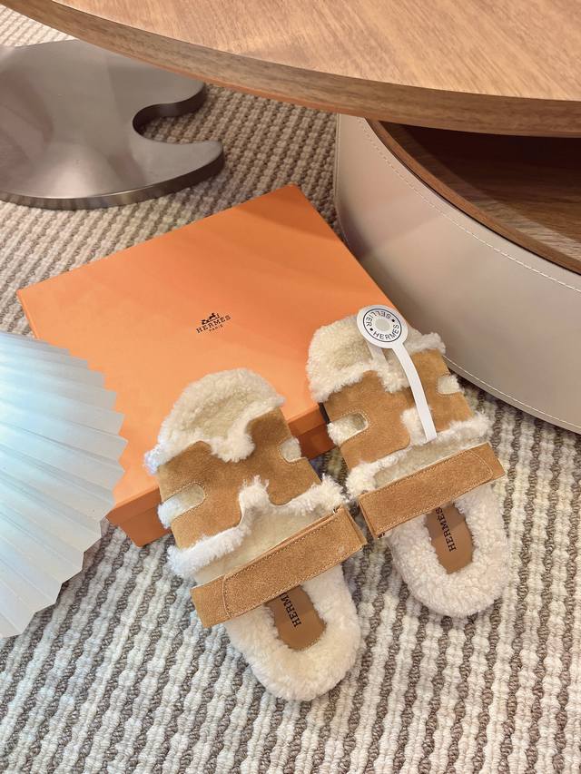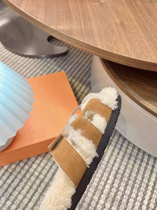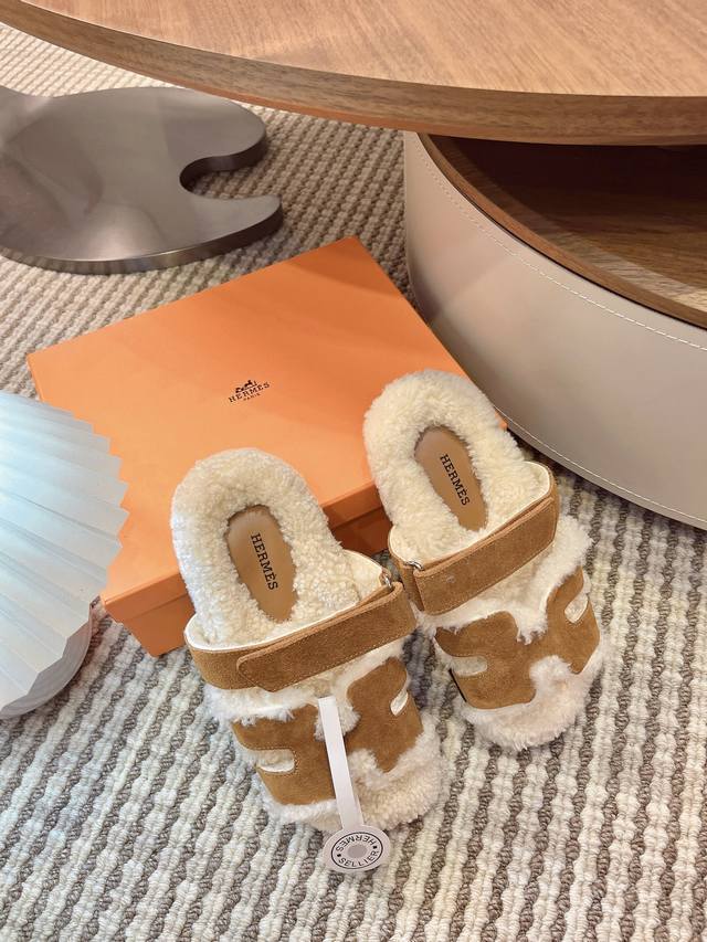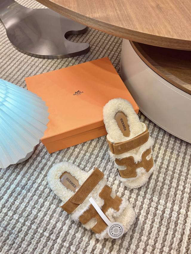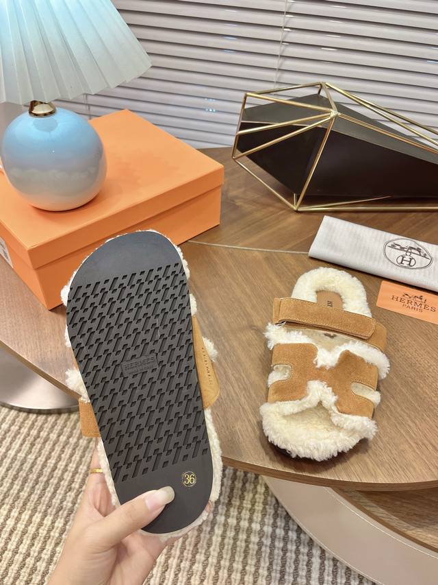 Hermes 爱马仕经典爆款二舅羊毛拖火爆来袭。秋冬穿搭必备单品 居家、出街百搭时尚超洋气 配色极其丰富多彩!行走的托斯卡纳风!Tpr防滑大底超轻盈 上脚超舒适