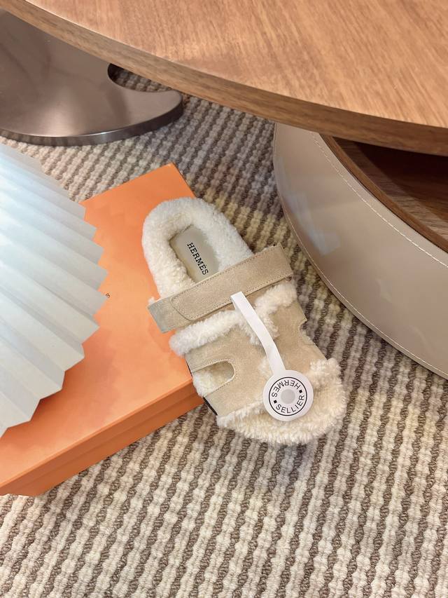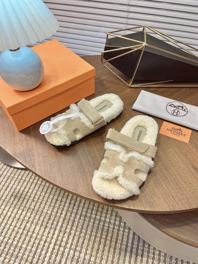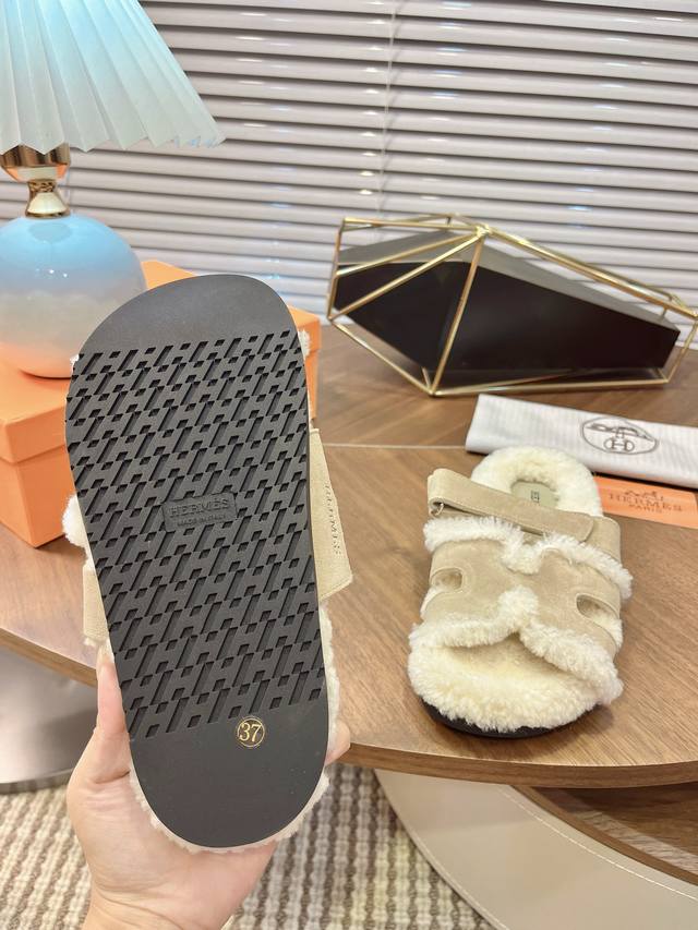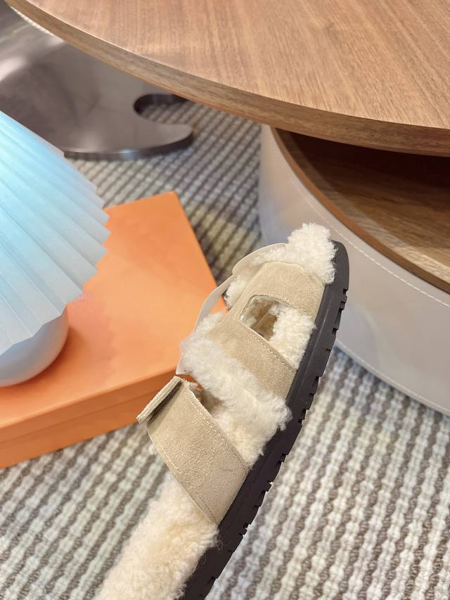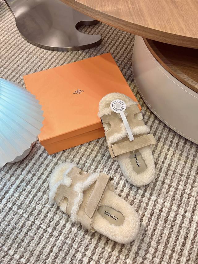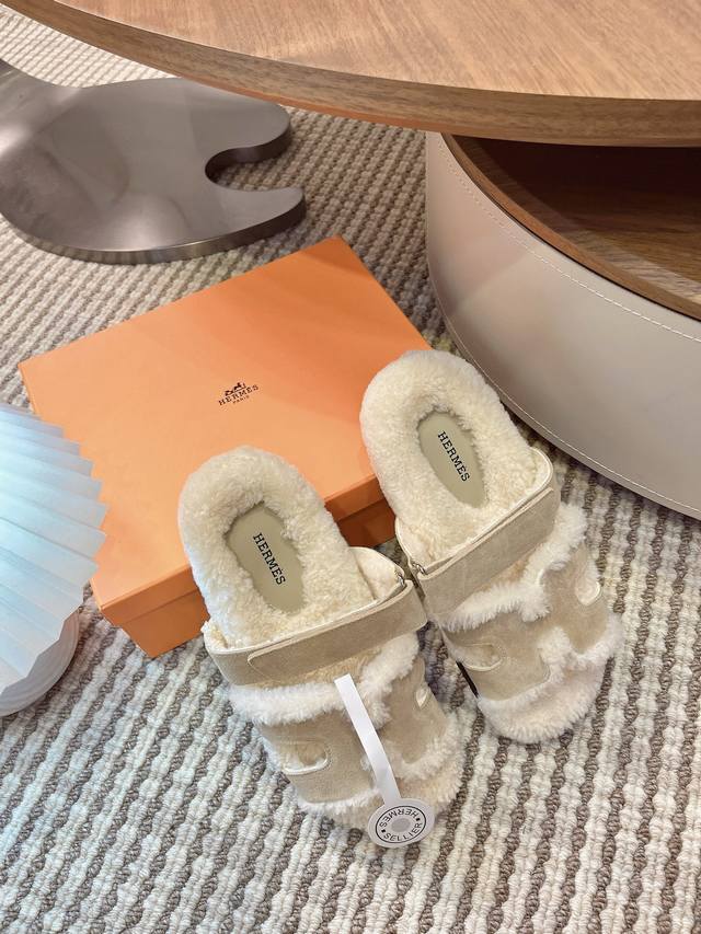 Hermes 爱马仕经典爆款二舅羊毛拖火爆来袭。秋冬穿搭必备单品 居家、出街百搭时尚超洋气 配色极其丰富多彩!行走的托斯卡纳风!Tpr防滑大底超轻盈 上脚超舒适