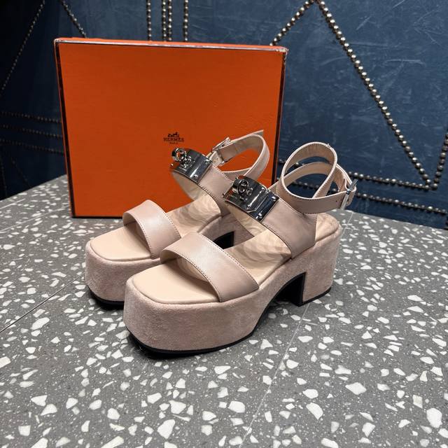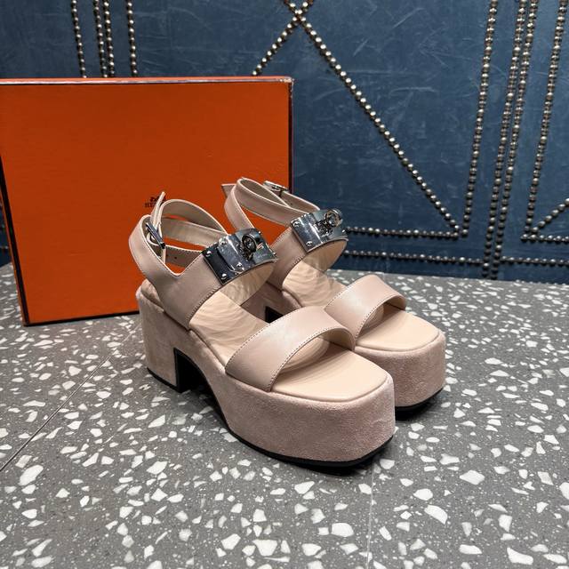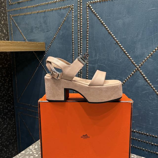 / Hermes 爱马仕防水台新款凉鞋系列 原版开模,时尚又百搭 超级舒服 每个细节都做到极致 鞋面:牛皮 内里:羊皮 大底:真皮大底 跟高:前水台5Cm 跟8Cm