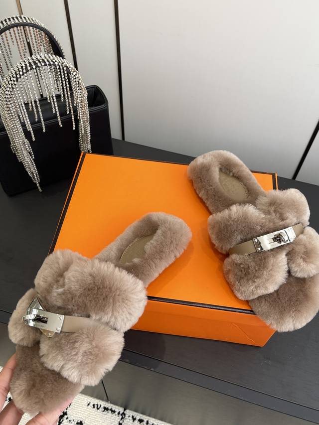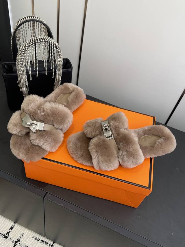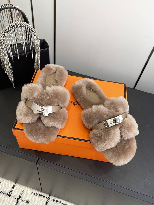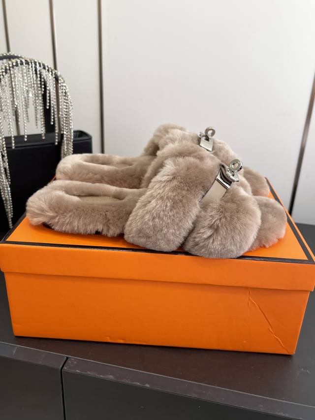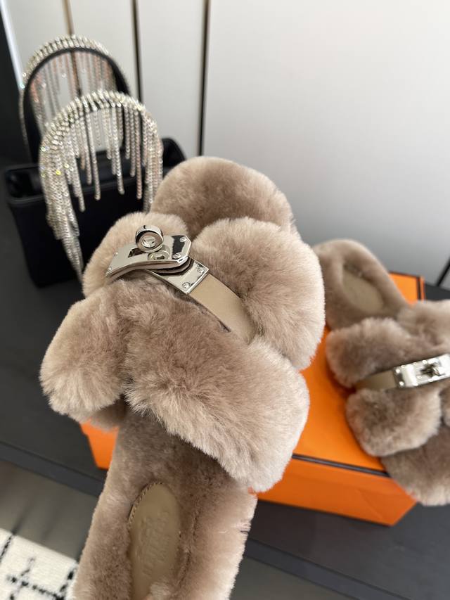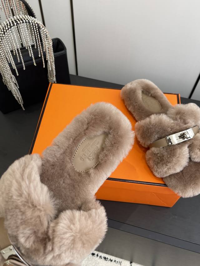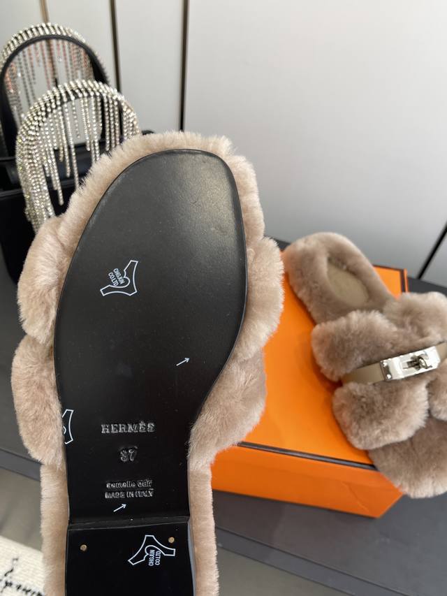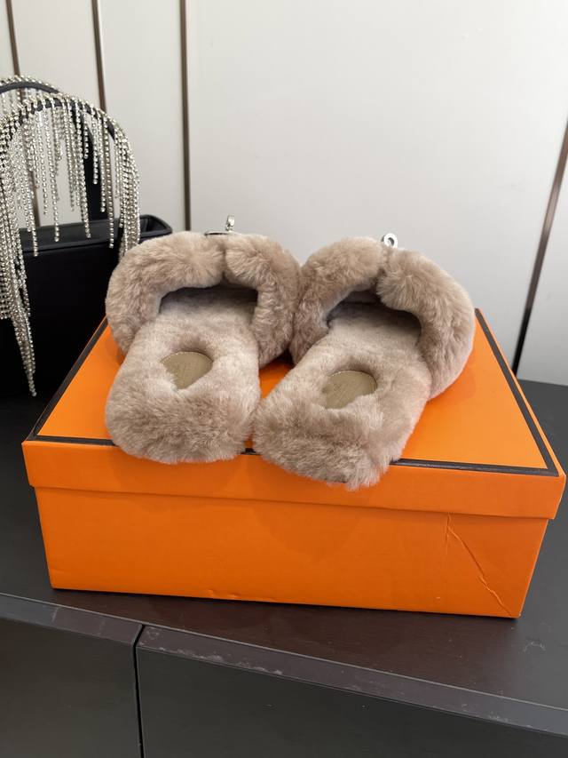 Hermes 爱马仕 新款泰迪羊毛H拖 时尚潮流最新款泰迪羊毛H拖秋冬款平底毛拖,上脚超百搭暖底,女主们的最爱 面料:泰迪羊真皮毛 里料:泰迪羊真皮毛 踮脚材料
