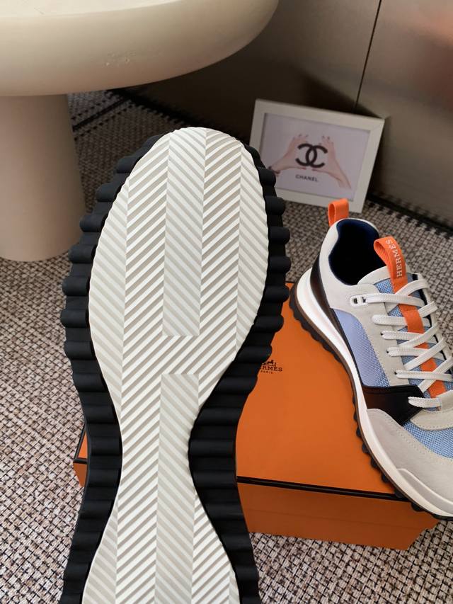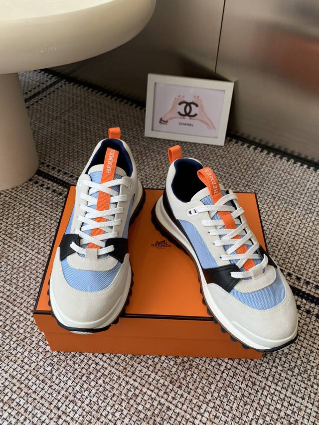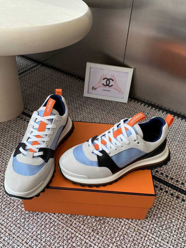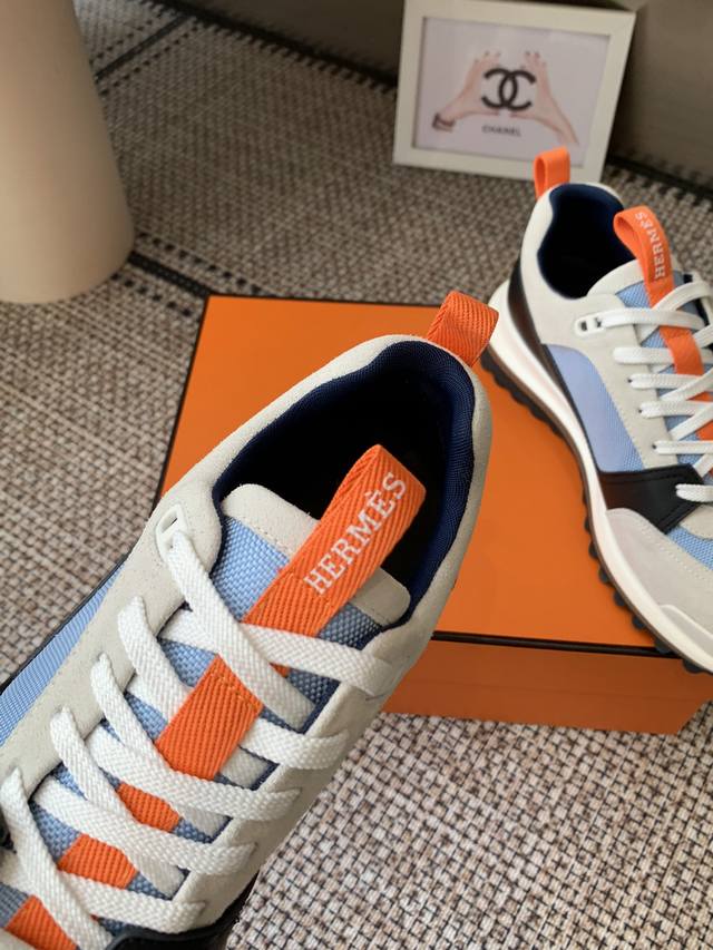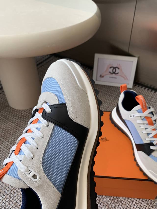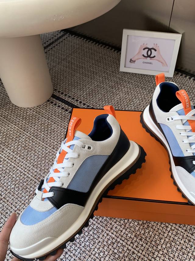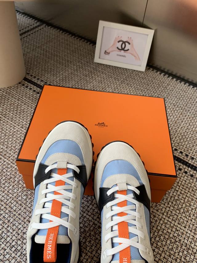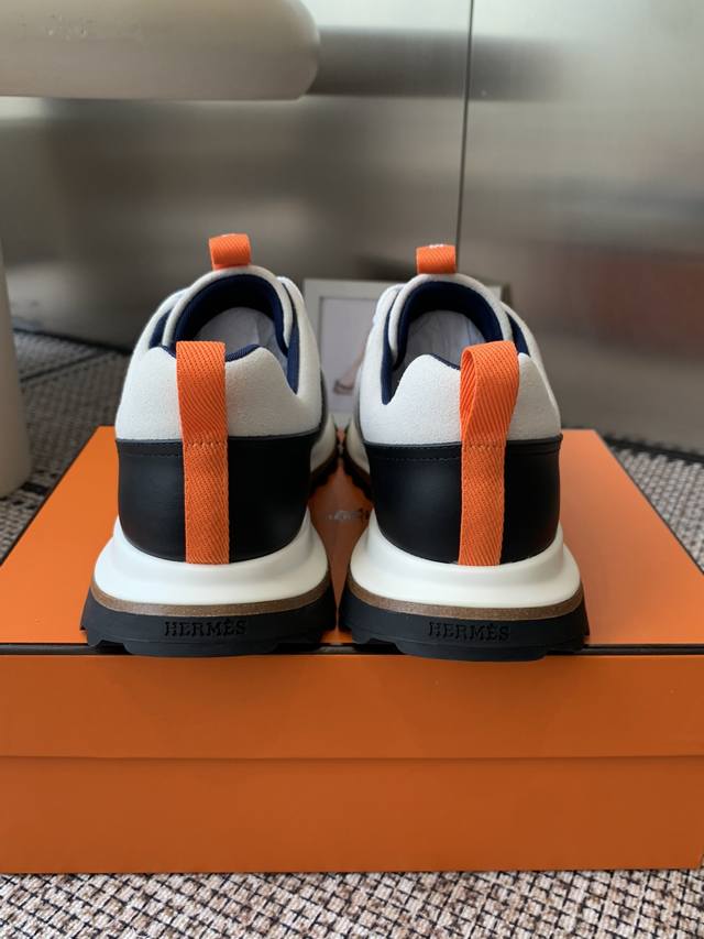 Hermes 爱马仕 25Ss新品 男款 休闲运动鞋 鞋面纳帕小牛皮 反绒羊京皮 品牌高丝光帆布鞋舌 后跟 品牌Logo织带 垫脚水染牛皮 超轻Tpu发泡 橡胶 双色成型大底 超高品控 做工精细凸显 高端 贵气 档次 码数:39-45