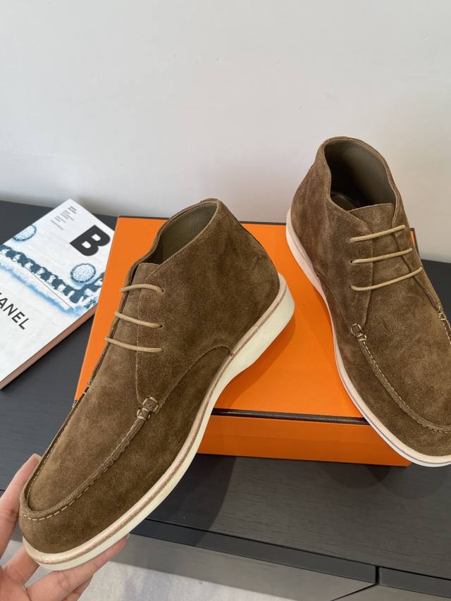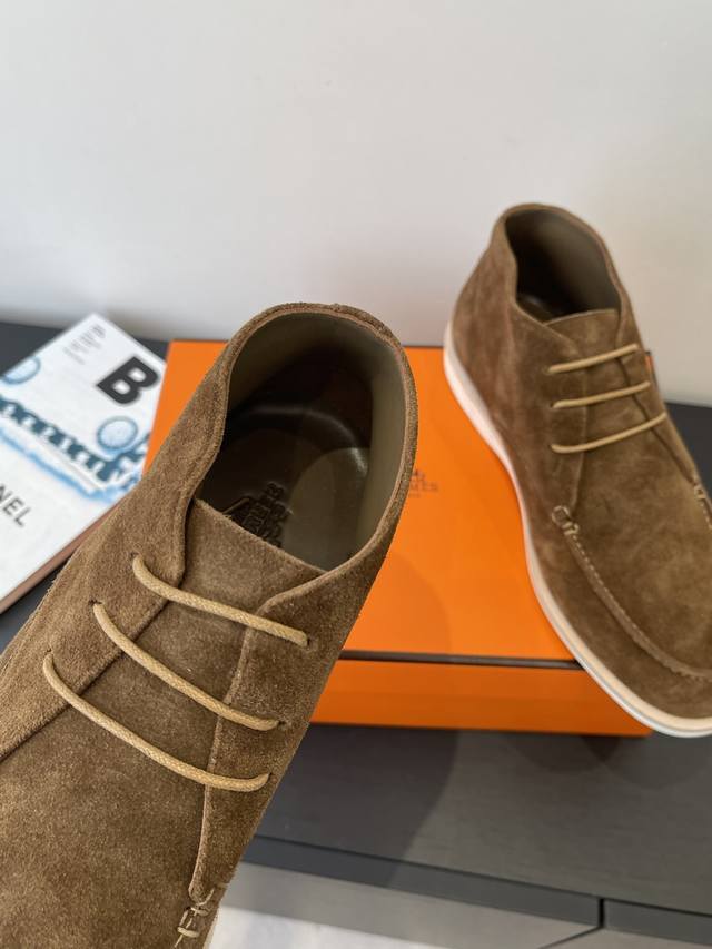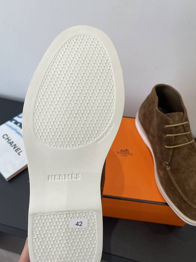 Hermes 爱马仕 25Ss新款 低帮 男款休闲鞋 简约设计符合当下老钱风的格调 这款小牛皮和麂皮山羊皮 系带运动鞋 饰有标志性“H”细节 设计简约流畅 打造