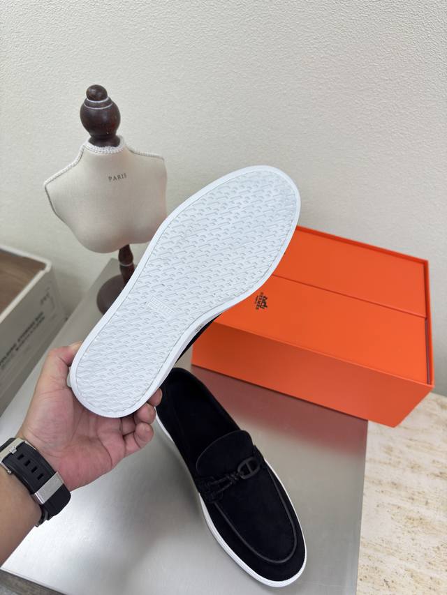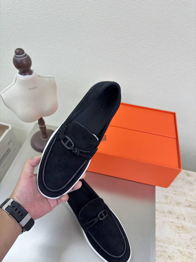 Hermes 爱马仕 H家 Game Kelly扣 厚底乐福鞋爱马仕 高版本 Hh 配手提袋 双只鞋盒包装 Game Kelly 扣 乐福鞋 黑色爱马仕 Job乐福鞋 油边工艺 编号:H242935Za01410小牛反绒麂皮 搭配Tpu 橡胶鞋底款式穿着感受舒适,打造休闲都市风格经典搭配 凸起Logo 小牛反绒麂皮高版本 Tpu成型大底 女款 爱马仕男款10 简约狂魔 经典百搭 原版一体成型大底 手工 工艺 平底 设计 内涵高端感十足 鞋中贵族 醒目 女款 35 36 37 38 39 40 41 男款