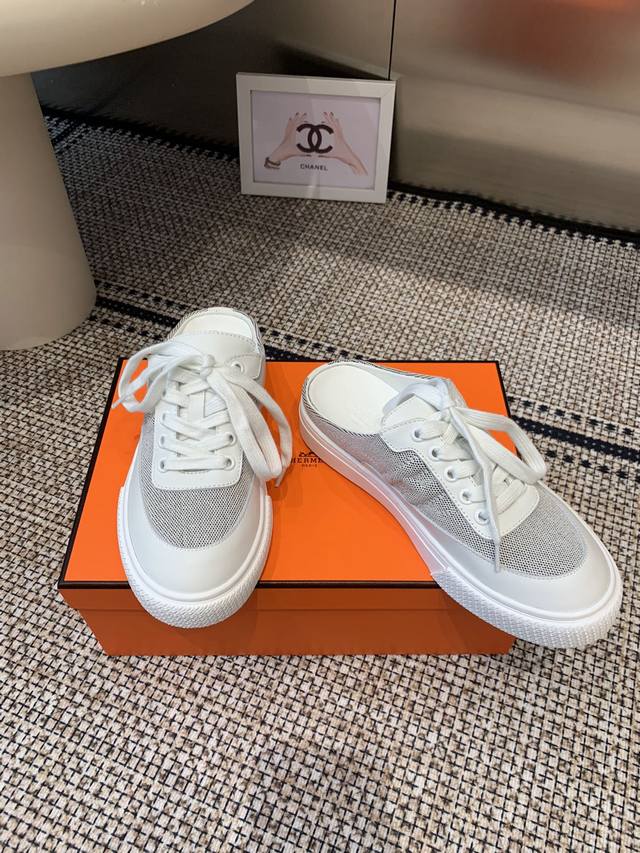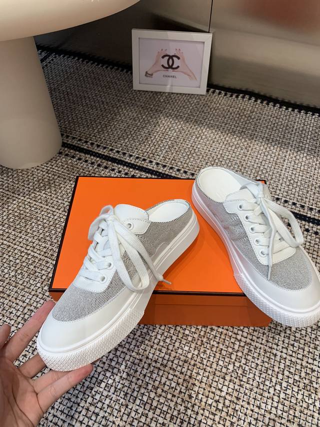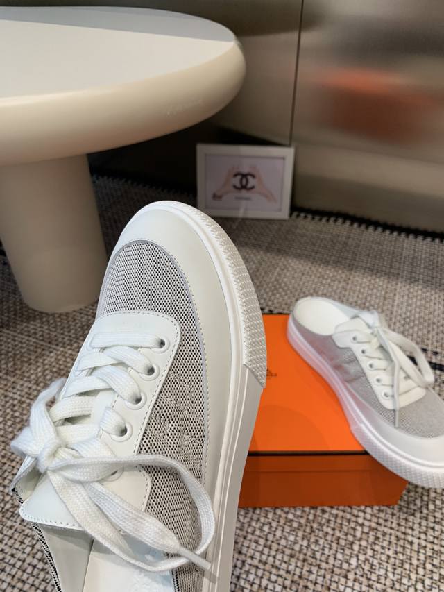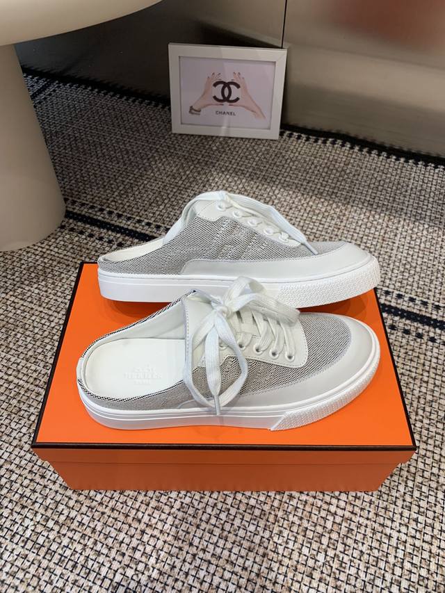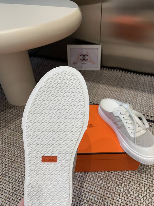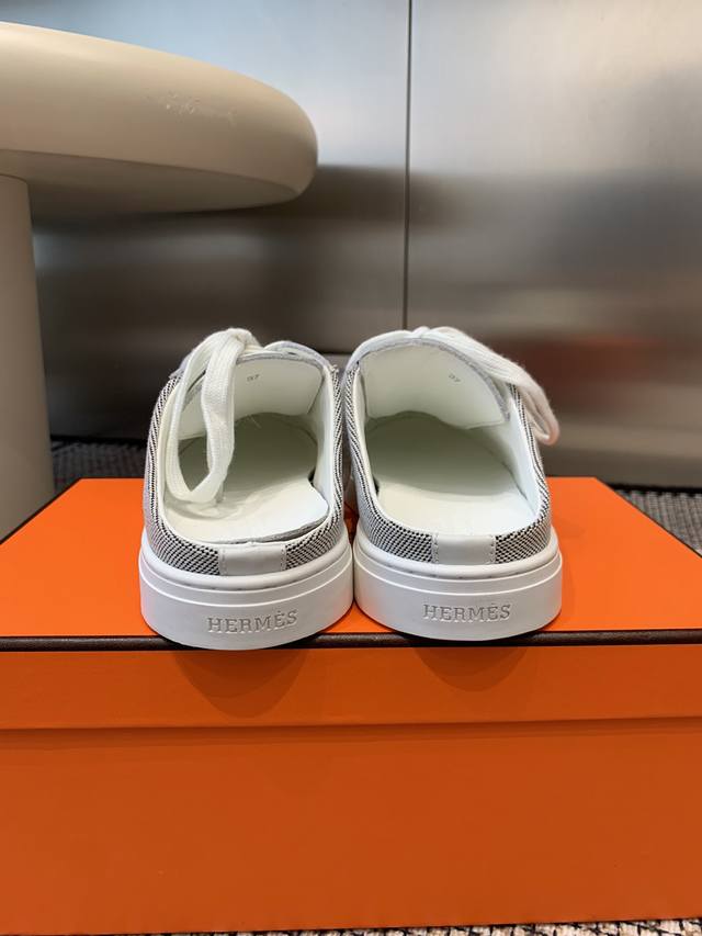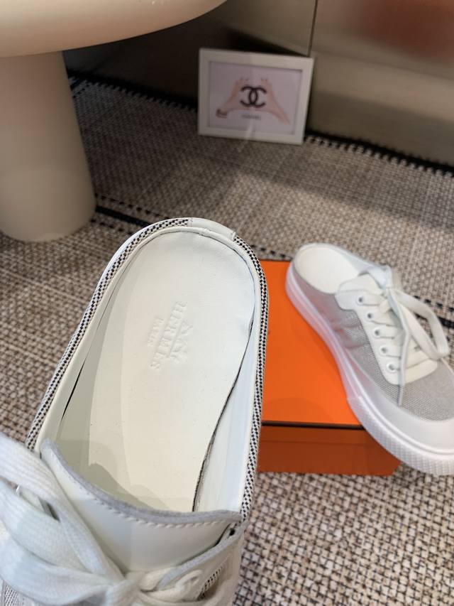 Hermes 爱马仕 H系带新品 一脚蹬 半拖鞋 工艺极致 同步专柜上新.鞋子的每一个细节都特别用心 相当惹眼 雅致的拼接元素 凸显不俗的气质! 时尚飞织系带方式,增添休闲的气息,精致的线条,无形之中能够更好体现出家族式的设计语言,穿插精致的线条 完美契合脚型 自然的勾勒出时尚的轮廓 达到视觉上的冲击效果充分演绎不一样的运动风格! 面料进口牛反绒 进口帆布 内里垫脚混种羊皮Ip Tpu大底 德国技术照射机无缝组合 轻便高弹防滑耐磨! 码数:35-40 40定做
