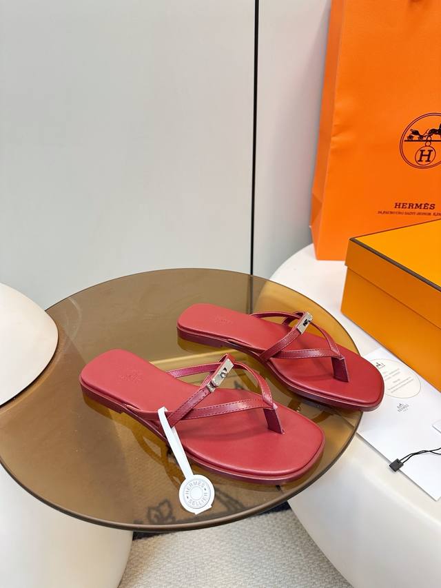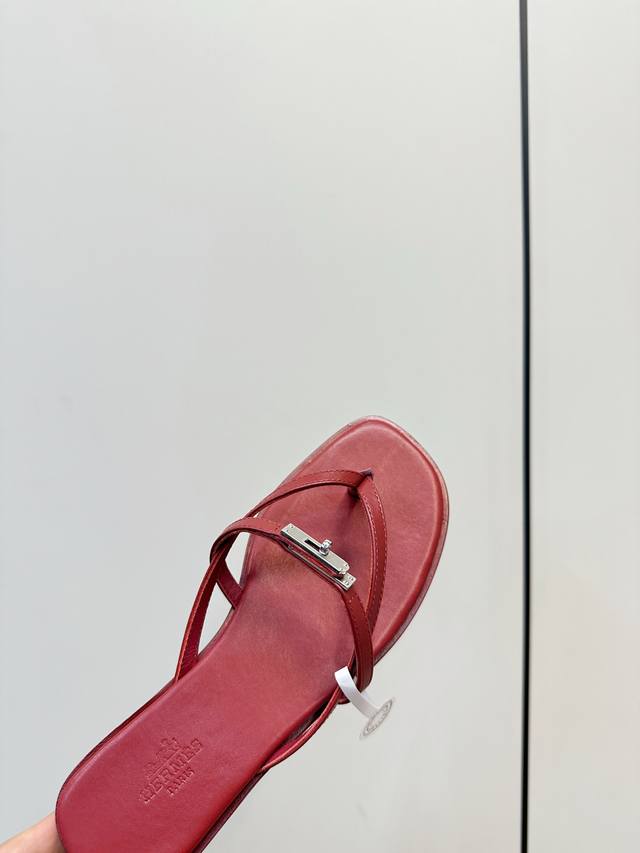 Hermes 爱马仕26新品Kelly扣人字拖 Hermes Kelly扣人字拖,经典设计+标志性Kelly 金属扣,辨识度超高!简约百搭,夏天穿超清爽。平底轻