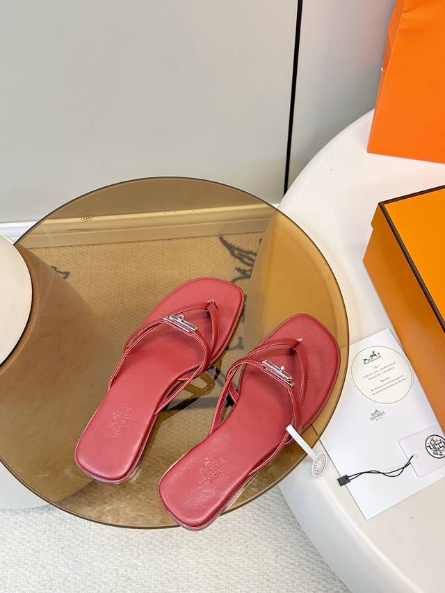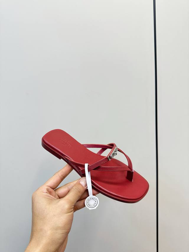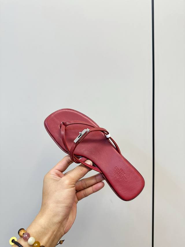 Hermes 爱马仕26新品Kelly扣人字拖 DDD Hermes Kelly扣人字拖,经典设计+标志性Kelly Ddd 金属扣,辨识度超高!简约百搭,夏天穿超清爽。平底轻便,日常或度假都很舒适,人体工学设计,长时间走路也不累。Kelly扣细节精致,品牌感满满,是夏日穿搭的点睛之选! DDD 优质牛皮鞋面,柔软细腻 Ddd 垫脚羊皮 Ddd 意大利真皮底 Ddd 码数35 42 40.41.42订做 DDD