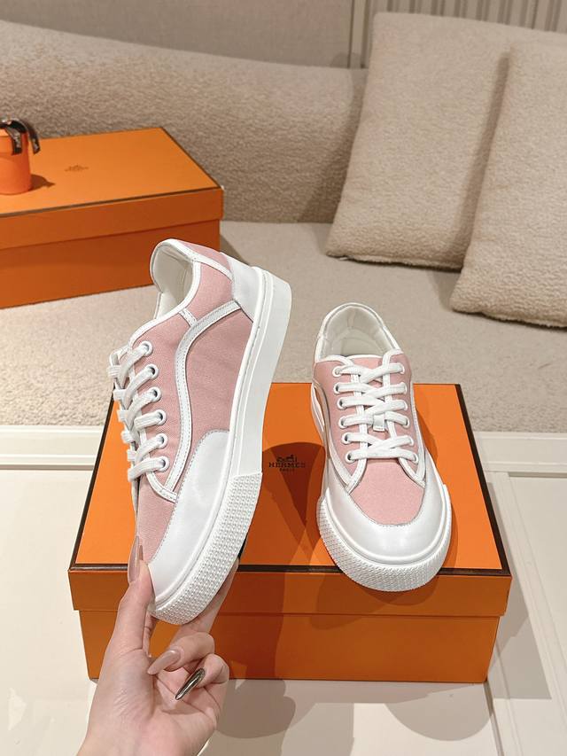 代购级 25Ss H家新品 Hermes 爱马仕 运动鞋 采用进口牛皮 进口麂皮镂空 运动时尚鞋面整圈头层小牛皮无断接大气奢华 定制Hermes...