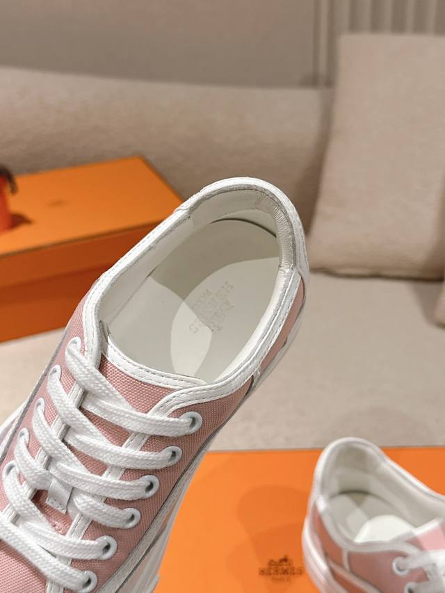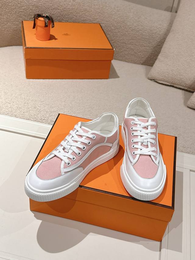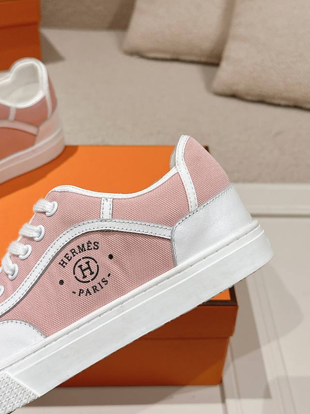 爱玛仕 25 春夏新品 专柜新款 经典H型Keep情侣款穆勒运动鞋 复古风格系列鞋面:原版特定制小牛皮定制布料...