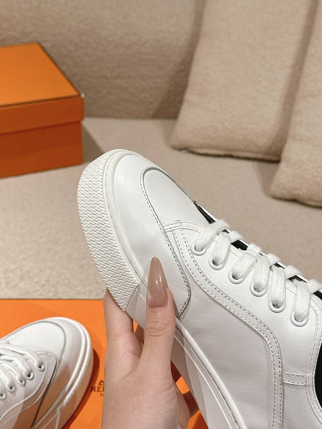 Hermes 顶级版本# 爱马仕Deep系列情侣款小白鞋休闲滑板鞋 时尚的图形设计 打造复古风格 鞋面:牛皮材质 内里:羊皮里 大底:Tpu大底 码数:35-4