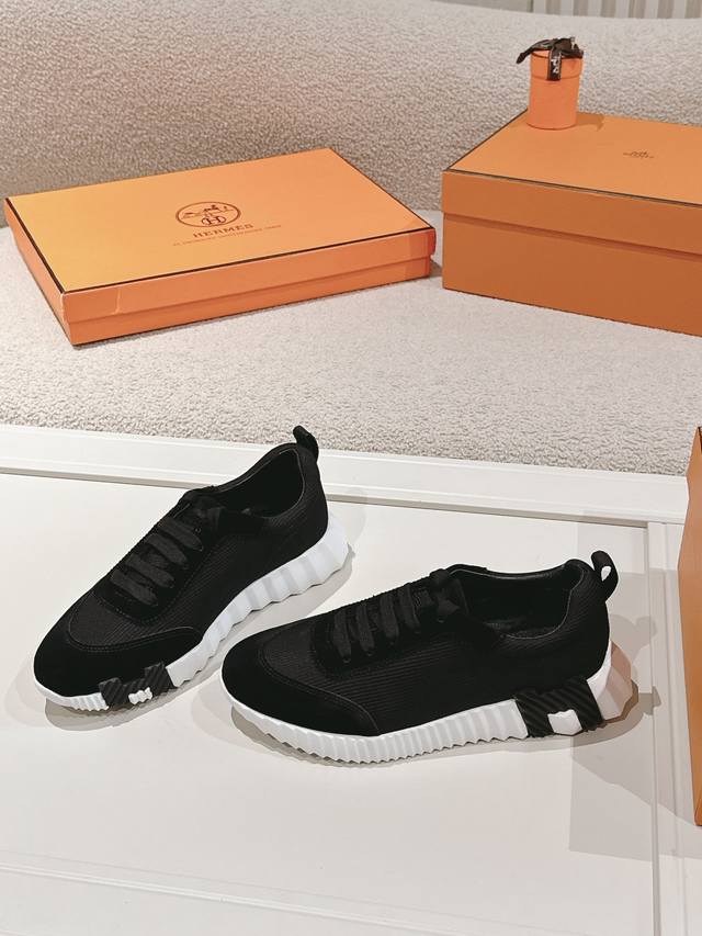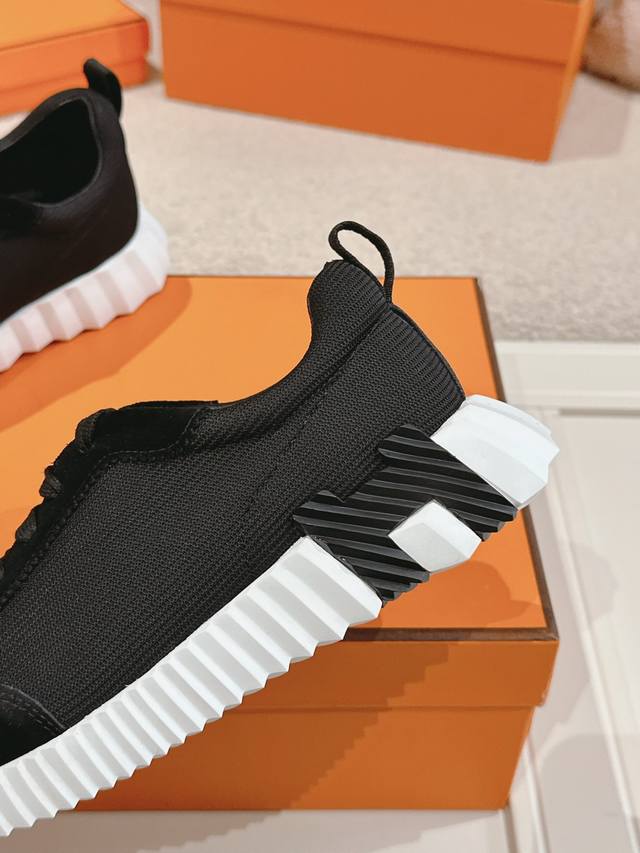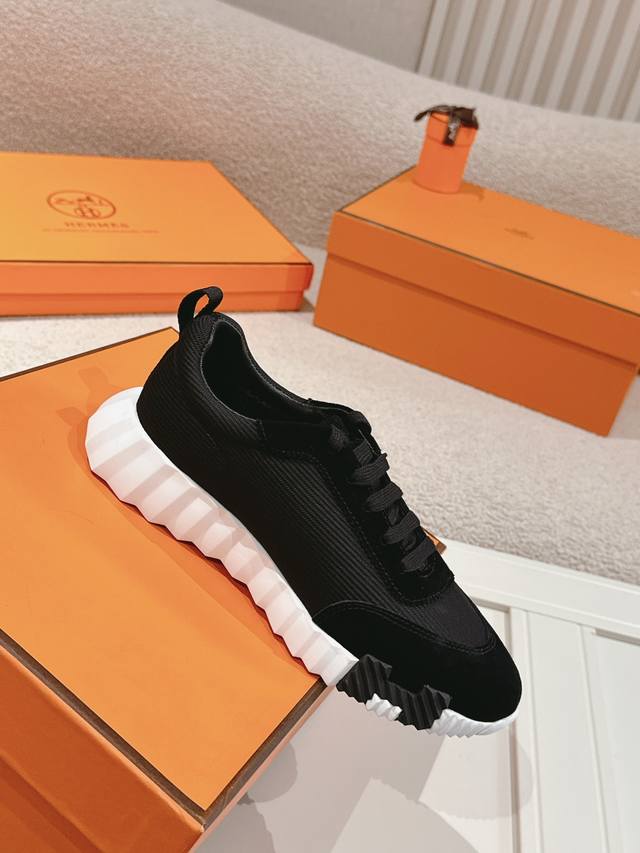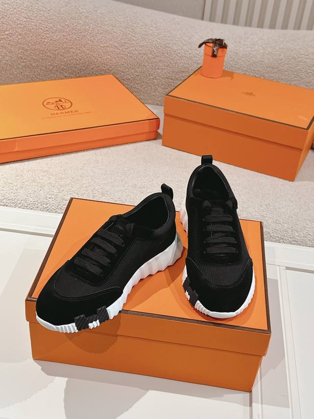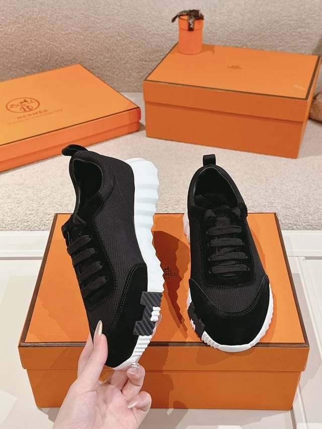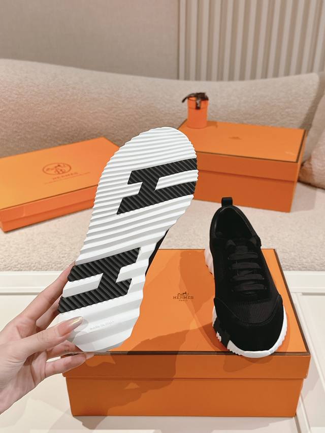 / Hermes 顶级版本# 爱马仕H家经典情侣款 休闲运动鞋 情侣款休闲之履运动老爹鞋结合高科技帆布与麂皮山羊皮,在橡胶鞋底上饰以夸张“H”字母,斜体设计和鲜艳色