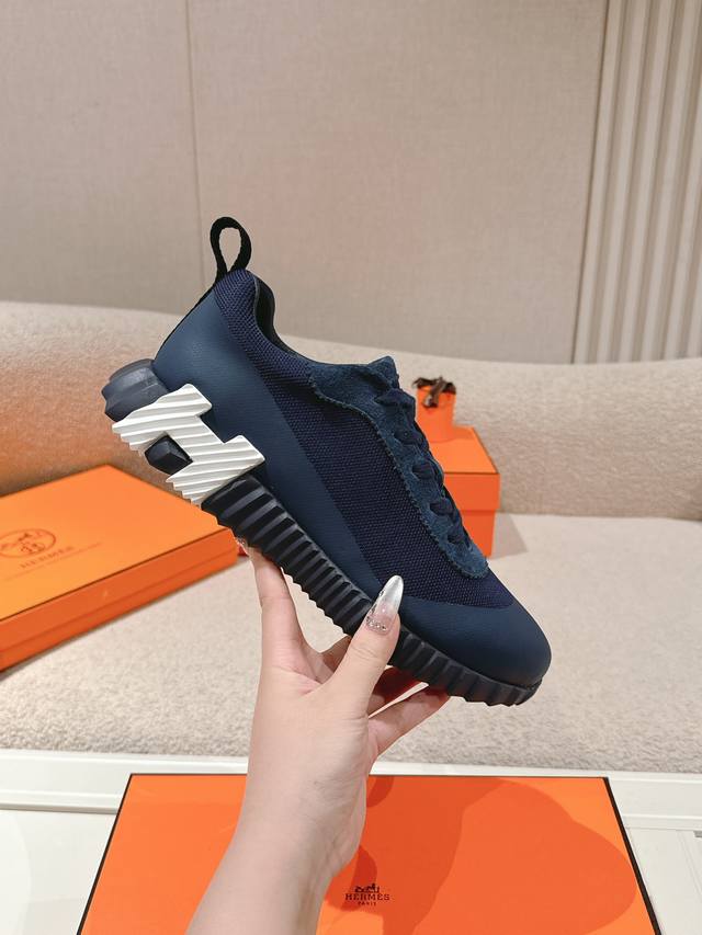 Hermes 顶级版本 DDD 爱马仕H家经典情侣款 休闲运动鞋 DDD 情侣款休闲之履运动老爹鞋结合高科技帆布与麂皮山羊皮,在橡胶鞋底上饰以夸张“H”字母,斜
