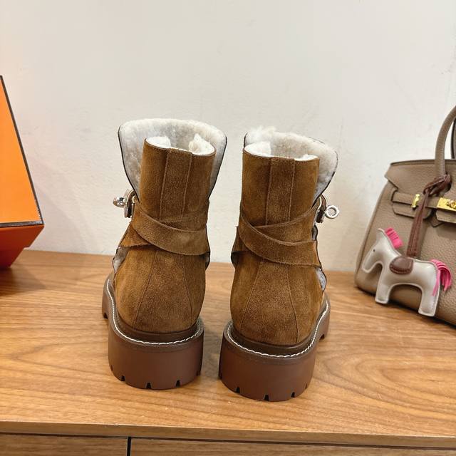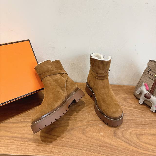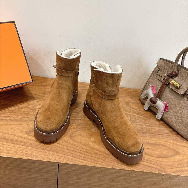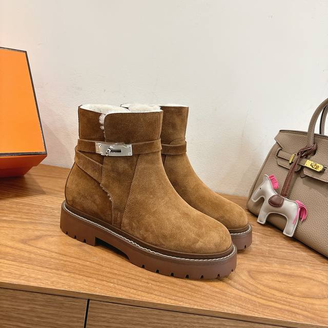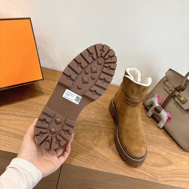 Hermes Fw25New Arrival~ DDD H家2025秋冬 短靴 DDD 进口皮料羊京材质,内里羊羔毛超Nice DDD 方头版型调整多次才完美出货,独家首发,实物均实拍!无比舒适的一款! DDD 双层意大利进口牛皮革鞋底! DDD 顶级精品 Size:35-39可定40.41 DDD