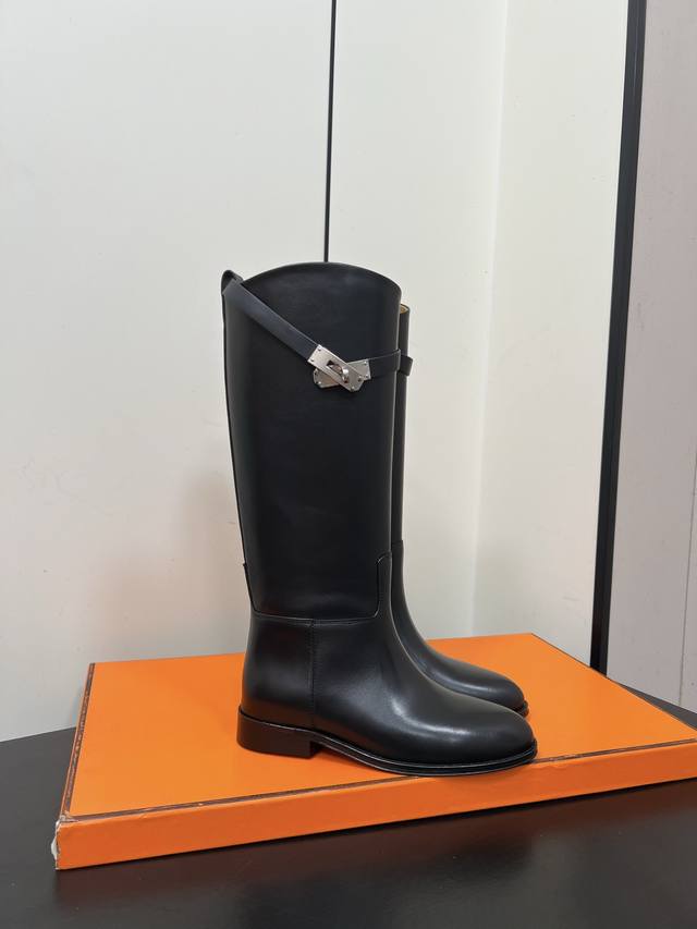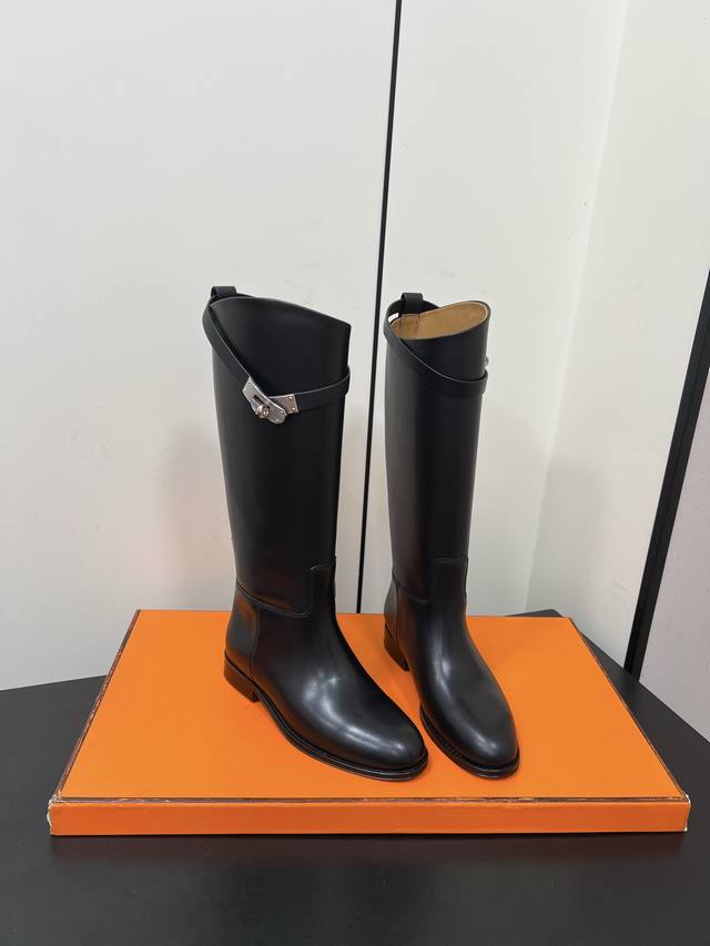 Hermes Kelly扣骑士靴长靴厚底款 经典的H家族筒靴风格不会落伍 配上爱马仕特有的扣子更具大气风范 经典就是经典,经久不衰,期待已久,不会错过! 鞋面意大利进口牛皮,牛皮内里垫脚,原版不锈钢饰扣 Size:35-39 40.41定做不退换