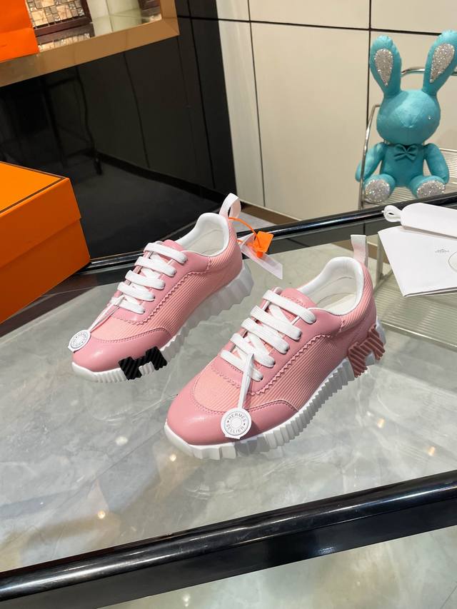 女款 、男款+10情侣款Hermes 爆单新品Bouncing运动鞋 轻Napa小牛皮拼接麂皮,搭配撞色大底,简约鞋型,打造活力休闲风格 又是一款必火的鞋子,酷