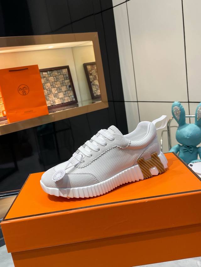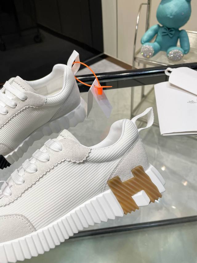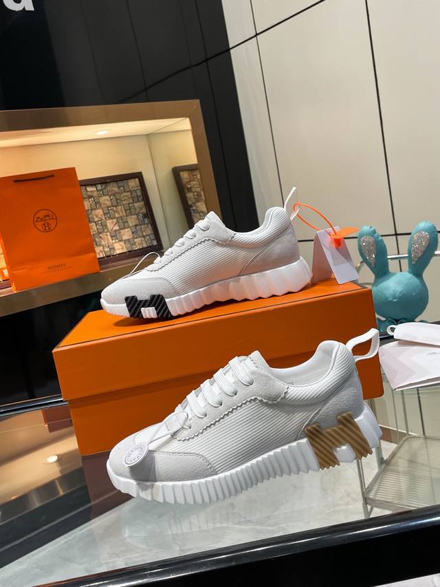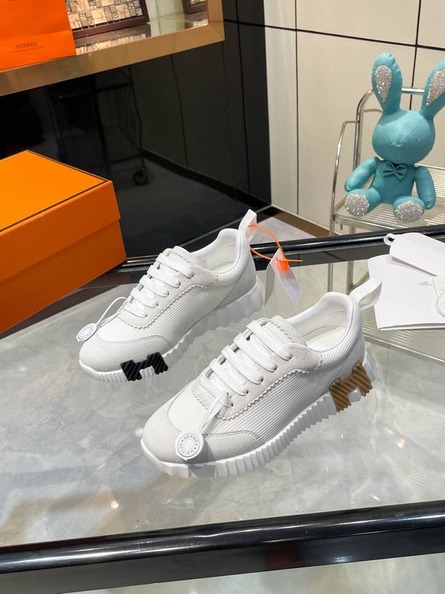 ΗErmes 情侣款. 女码35-39. 40.41.42 订做 男码39-44. 45.46订做 DDD 25Ss新品Hermes 爱马仕顶级版本爱马仕H家经典 飞织休闲运动鞋,最高版本,鞋底上饰以夸张“H”字母,斜体设计和鲜艳色彩展现活力,延续品牌设计灵感! DDD 非常漂亮的一款休闲鞋,大气而又不失可爱!经典的款型,独具魅力的增高鞋! DDD 原版面料1:1,内里为原版透气进口羊皮里,垫脚进口羊皮,大底定制私模:T U十p U抽真空一体成型,原版套楦工艺,原版包装盒配鞋履收纳袋,手提袋,鞋盒带蓝光防