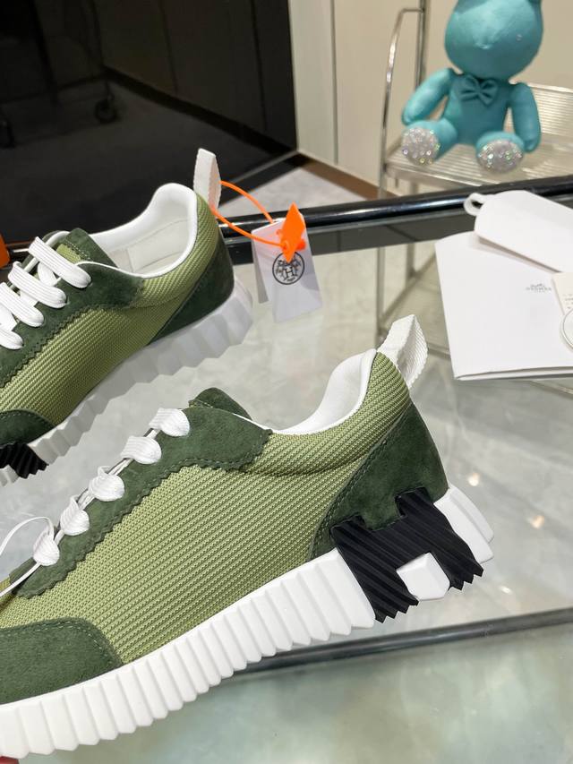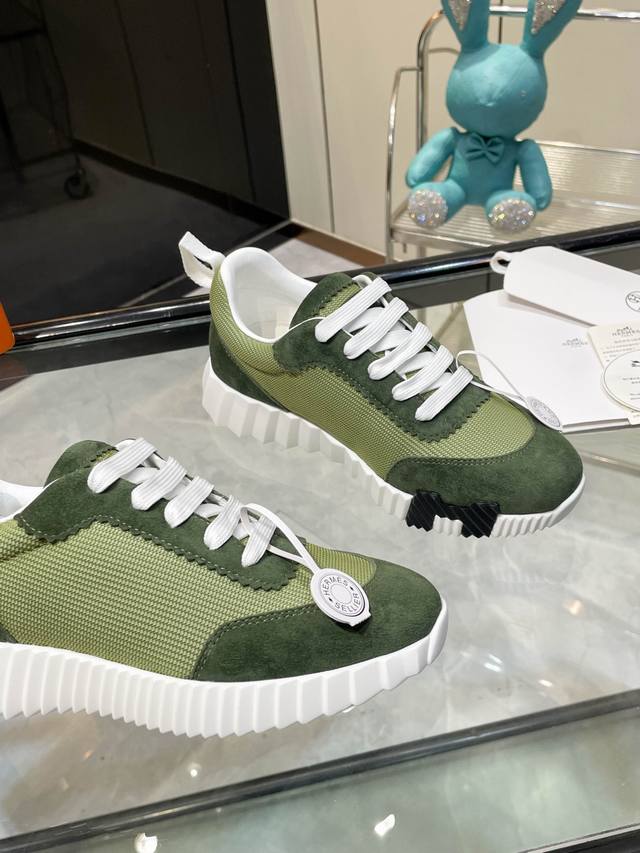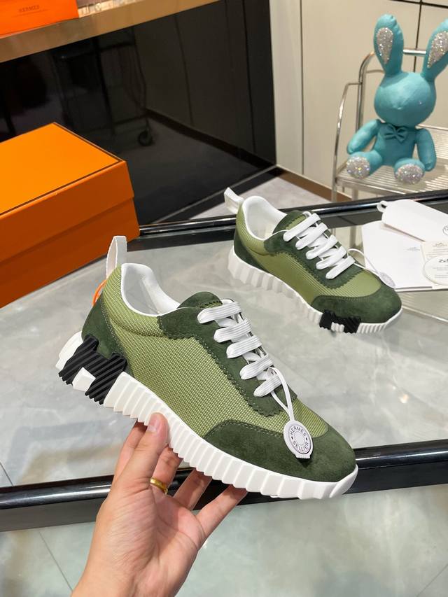 ΗErmes 情侣款. 女码35-39. 40.41.42 订做 男码39-44. 45.46订做 DDD 25Ss新品Hermes 爱马仕顶级版本爱马仕H家经典 飞织休闲运动鞋,最高版本,鞋底上饰以夸张“H”字母,斜体设计和鲜艳色彩展现活力,延续品牌设计灵感! DDD 非常漂亮的一款休闲鞋,大气而又不失可爱!经典的款型,独具魅力的增高鞋! DDD 原版面料1:1,内里为原版透气进口羊皮里,垫脚进口羊皮,大底定制私模:T U十p U抽真空一体成型,原版套楦工艺,原版包装盒配鞋履收纳袋,手提袋,鞋盒带蓝光防