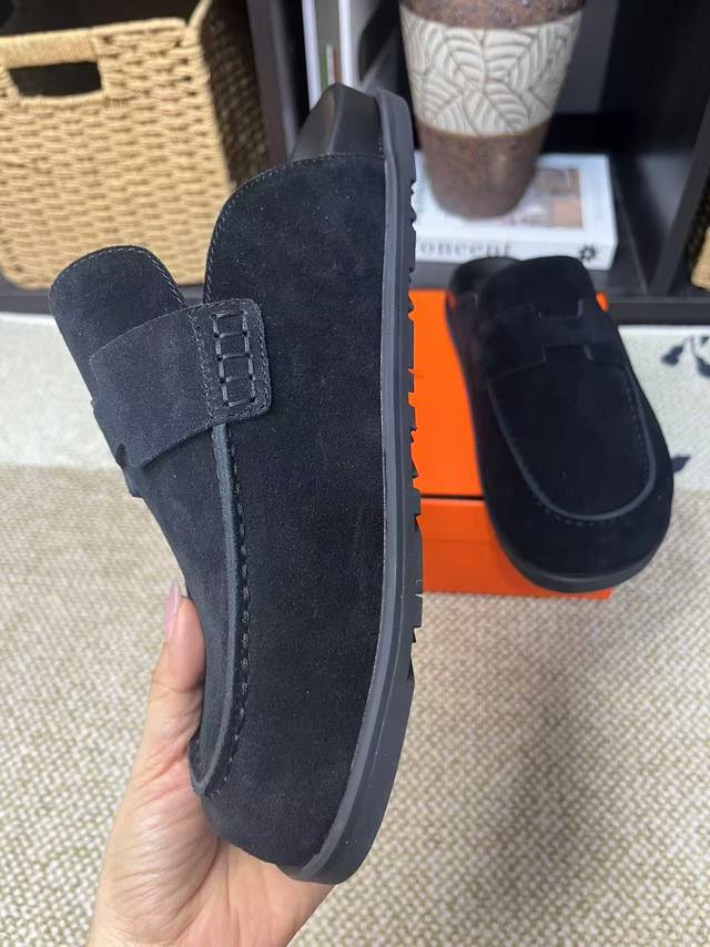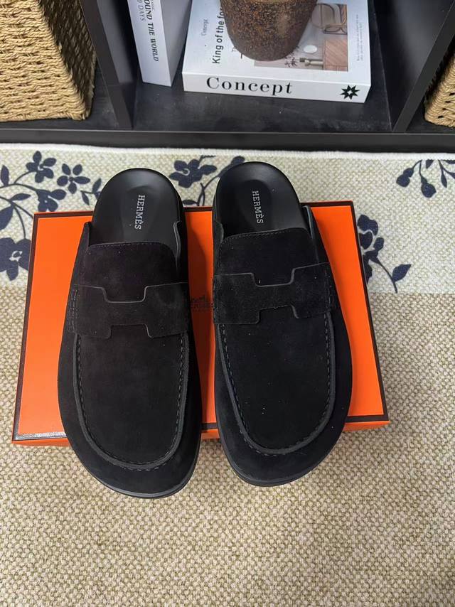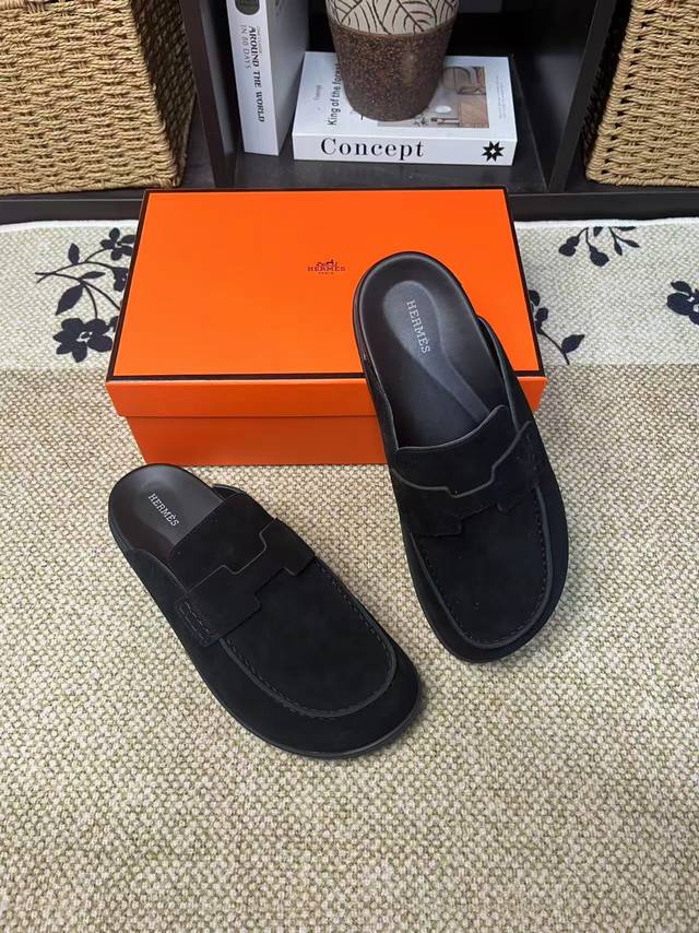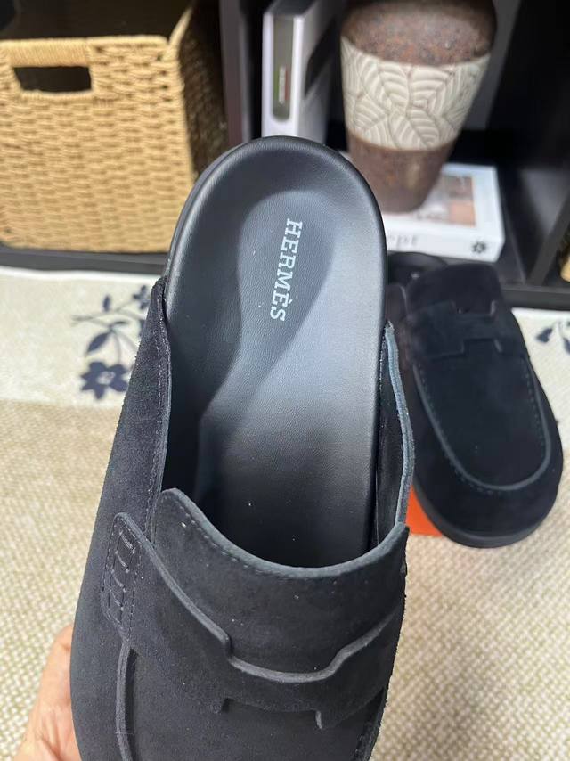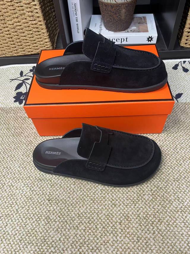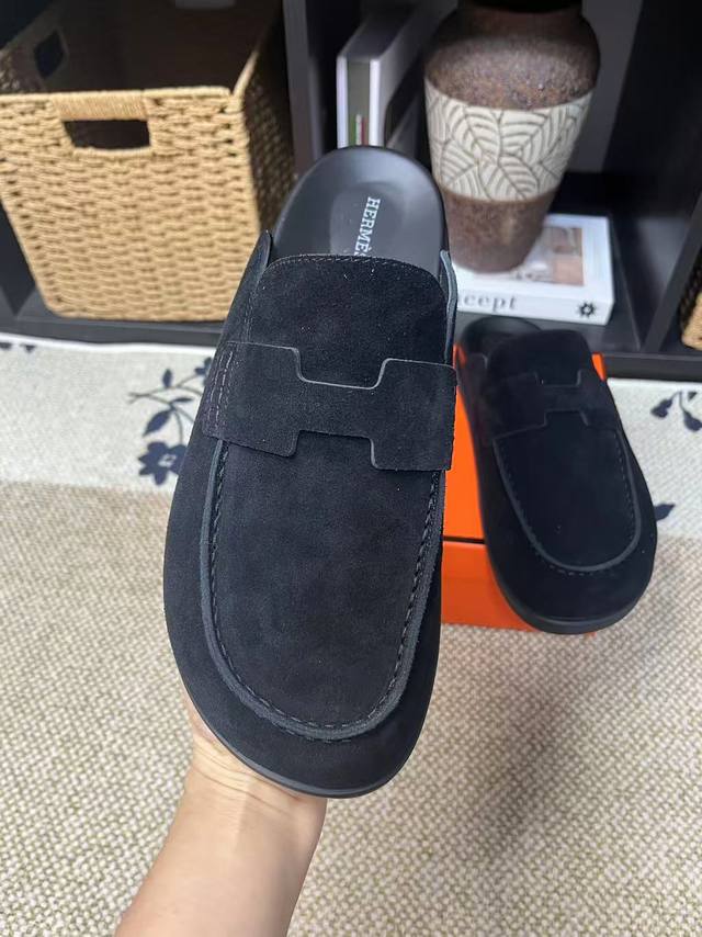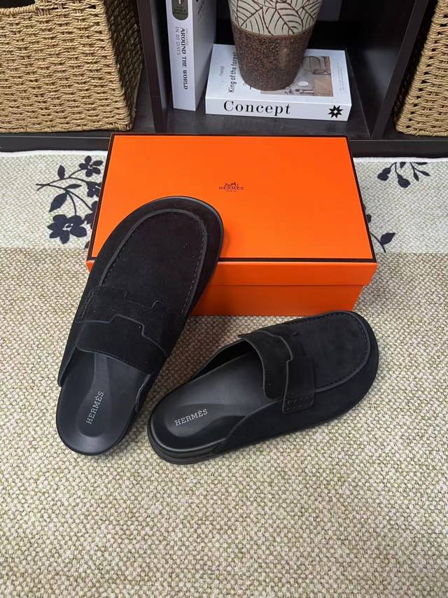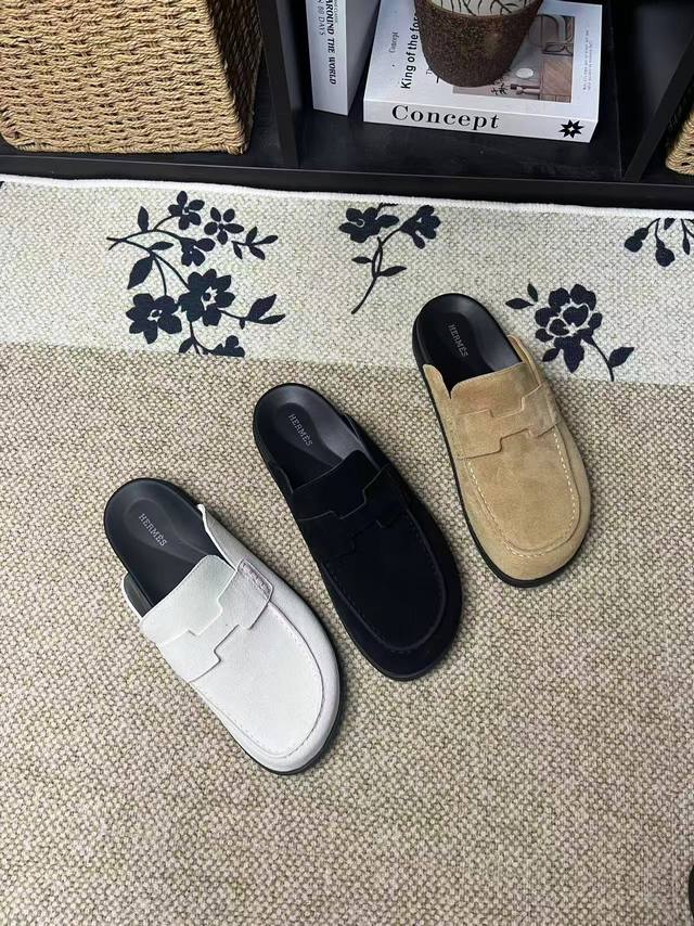 / 元 情侣款Hermes爱马仕呆萌半拖。 夏天真的太需要百搭拖鞋了,怎么搭配都好看,随意且高级的感觉 舒适度也很棒,搭配各种彩色袜子,潮爆了 爱马仕新款半拖鞋 高
