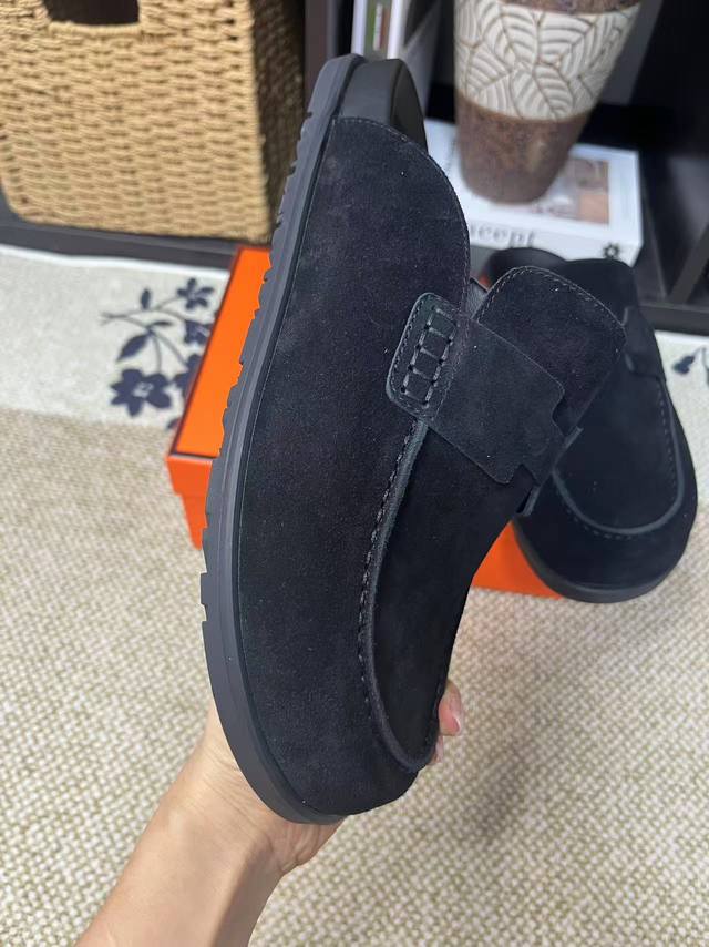 元 情侣款Hermes爱马仕呆萌半拖。 夏天真的太需要百搭拖鞋了,怎么搭配都好看,随意且高级的感觉 舒适度也很棒,搭配各种彩色袜子,潮爆了 爱马仕新款半拖鞋 高品质 鞋面:进口牛反绒 内里:进口羊皮 垫脚:进口混种羊皮 大底:Tpu防滑耐磨大底 码数:男39-46 女35-40