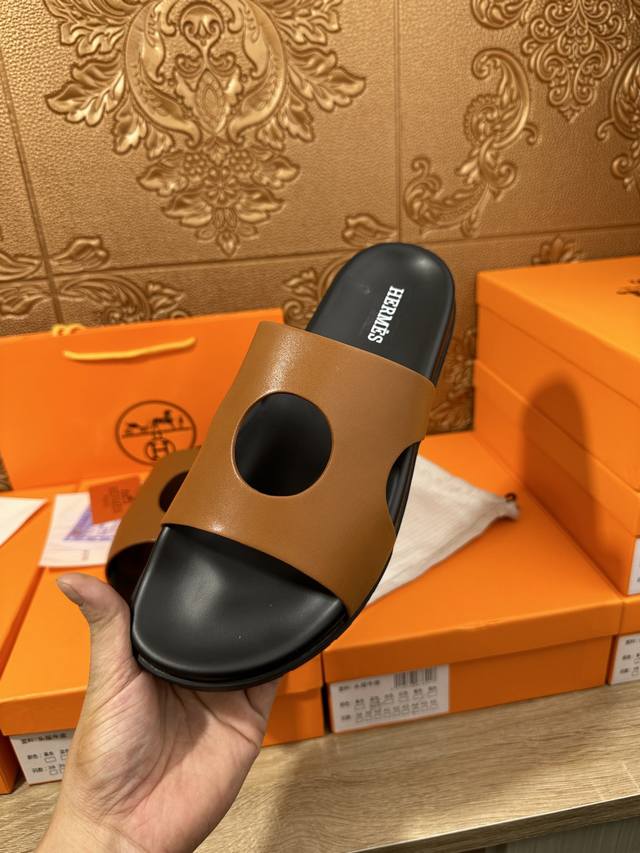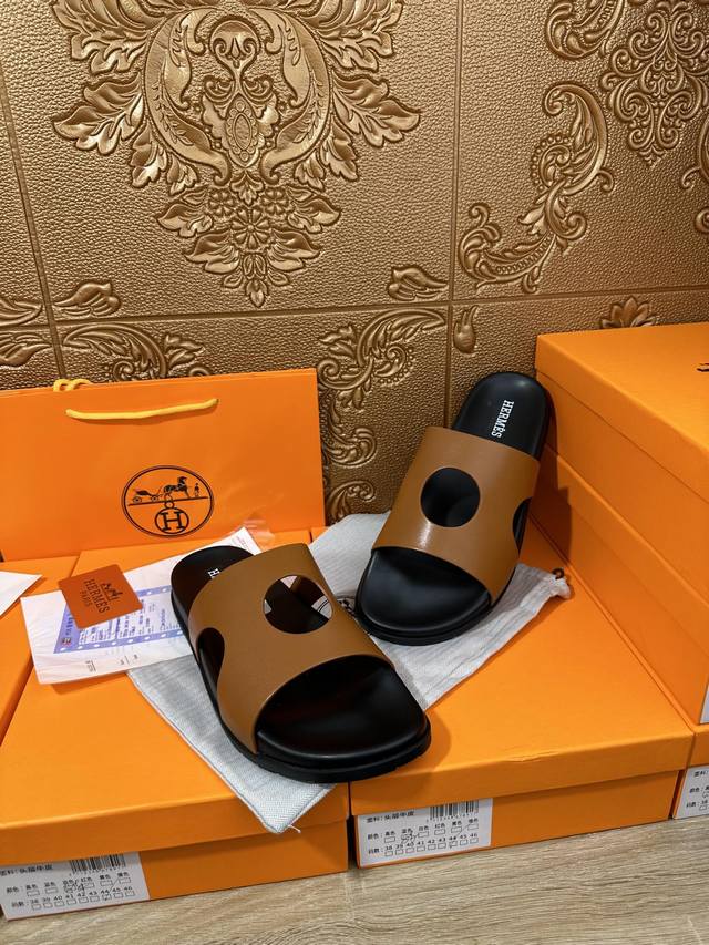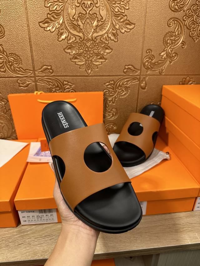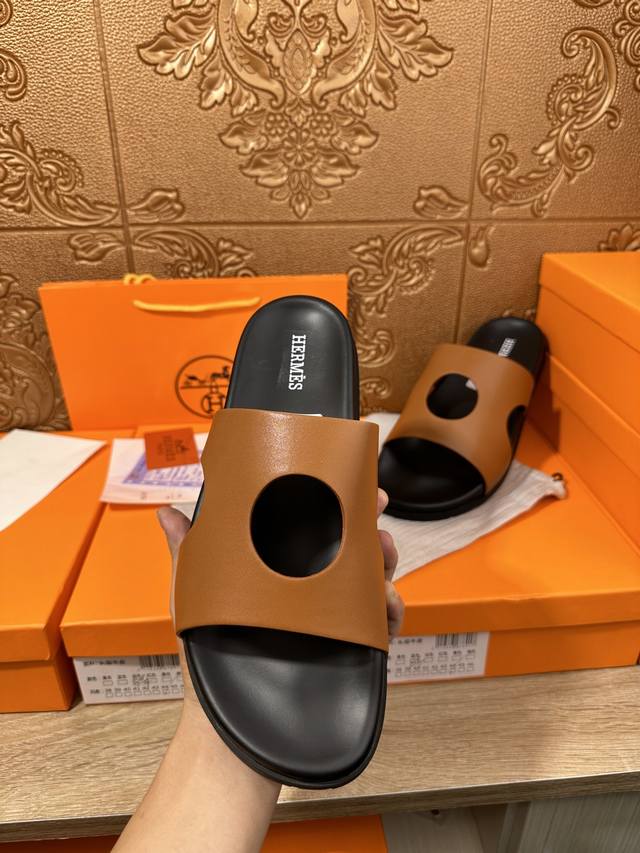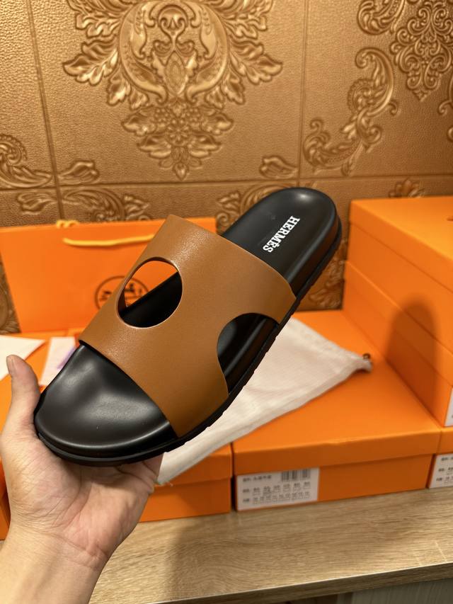 出厂价 Hermes爱马仕 官网最新专柜同步新款oran牛皮面h拖鞋 巴黎原版飞回正品开模完美打造最高品质 诚意巨献,可随意进出专柜鞋面采用原版牛皮。多色可选。