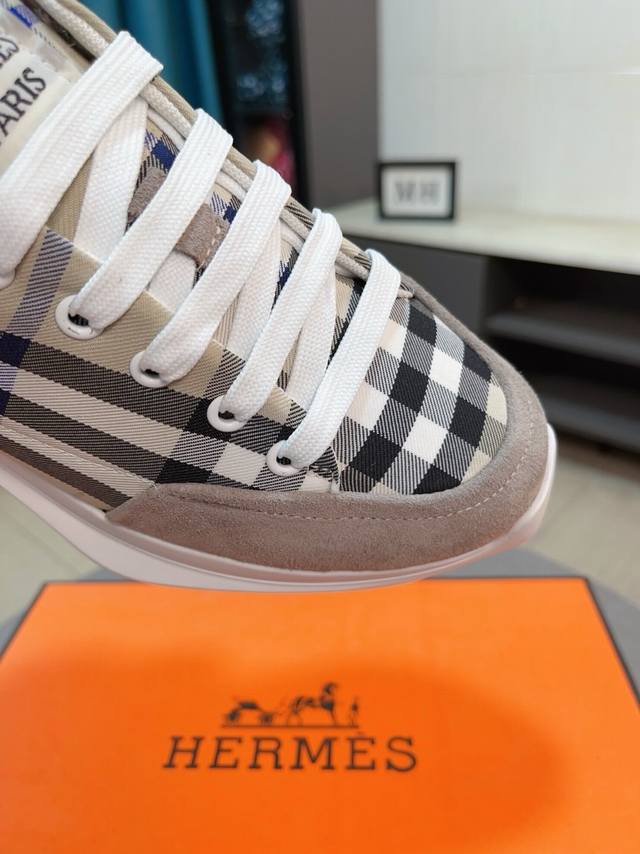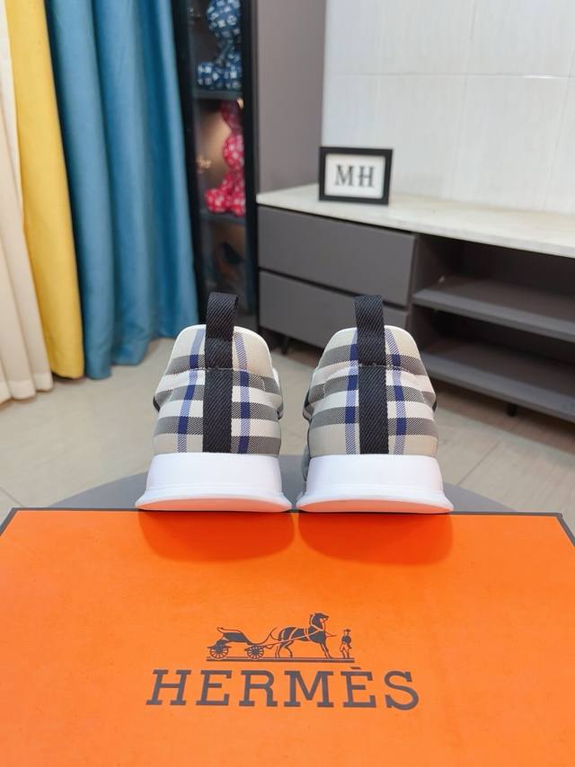 H爱马仕运动鞋 男士休闲运动鞋 鞋面小牛皮拼接打造 舒适透气羊里 质感十足 轻盈鞋底装饰撞色图案 打造百搭时尚风格 Size 38-44...