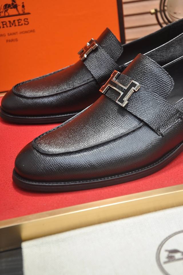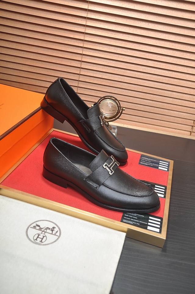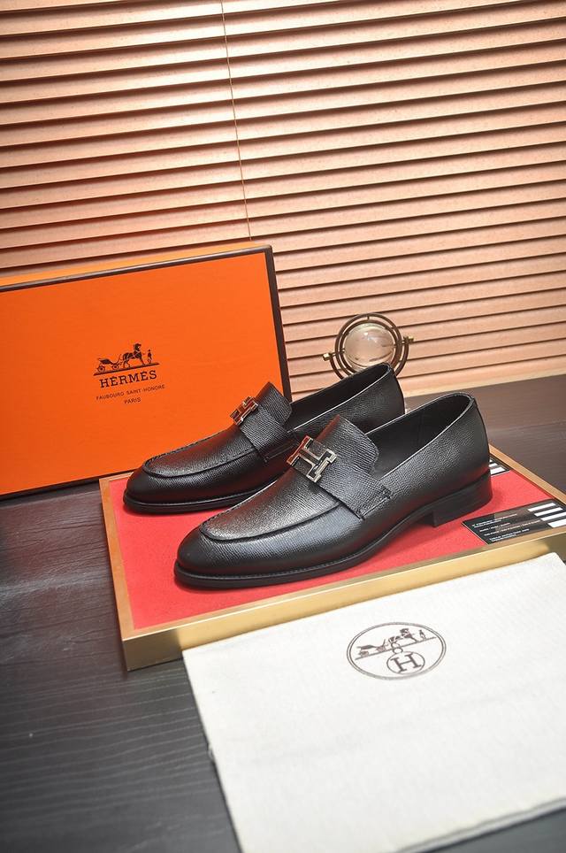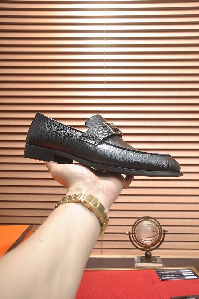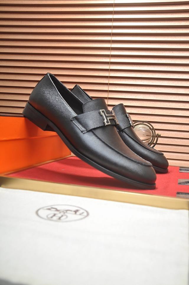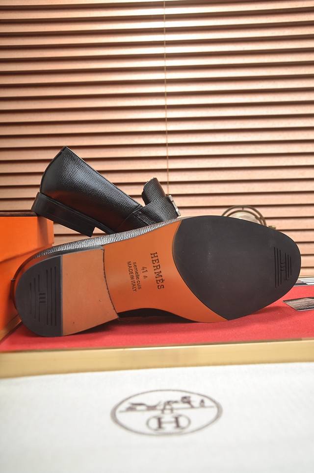 出厂价P 爱马仕 Hermes 牛皮内里 意大利顶级奢侈他不追求新奇的款式和华丽的色彩,以其完美无瑕、优雅、经典的风格吸引着成功男士的青睐正装皮鞋 这款非常非常舒适,简洁稳重的款式让您轻松搭配任何风格!版型绝对原版套楦1:1精制,材质方面我们更是精益求精,进口牛皮+牛皮内里质感非凡!.码数:38-45 45定制