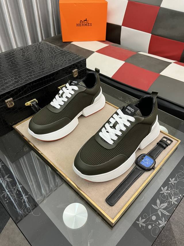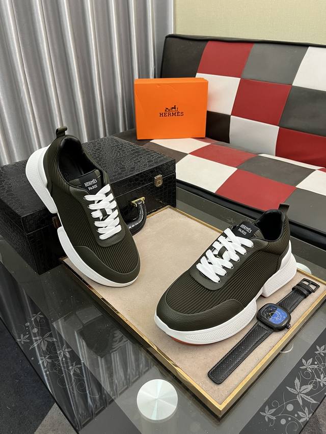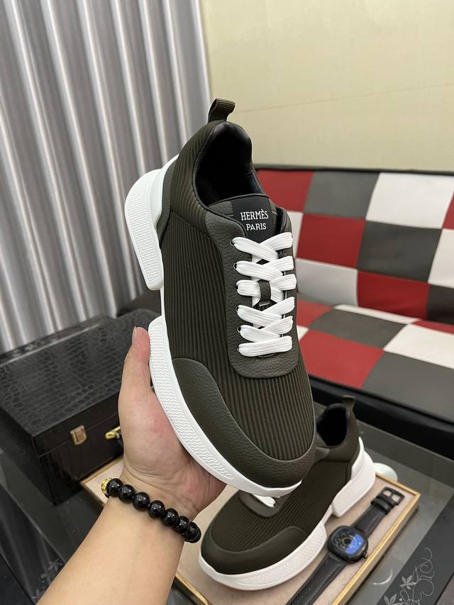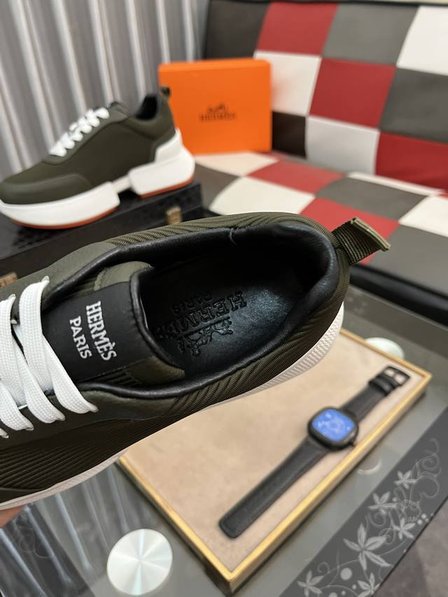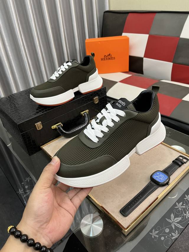 出厂价pp: 爱马仕新款休闲运动鞋专柜同步发售,原版橡胶大底,超级舒适,鞋面采用进口牛皮配原版布料,舒适羊皮内里,细节决定品质,码数:38-446色可选