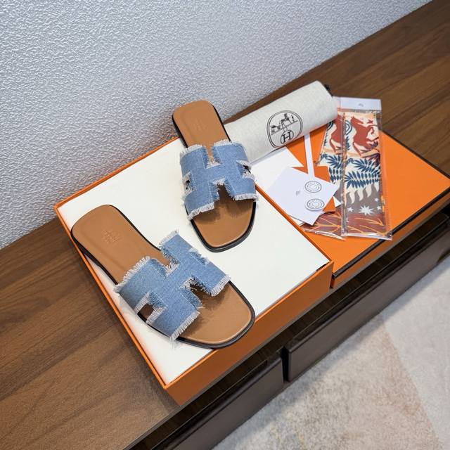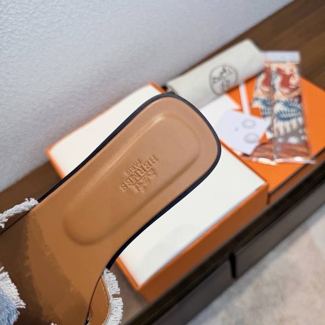 FFF 出厂价Pp: 随机赠送丝巾 DDD 品牌:Hermes DDD 颜色:经典全色系 DDD 编号:H8018-33 DDD 跟高:1Cm DDD 码数:35-40全码 34.42.42订做不退不换 DDD 鞋面材质:进口小牛皮-牛仔布流苏 DDD 鞋底材质:真皮大底全透染 DDD Hermes爱马仕,有历史的代表作品,永恒经典款Oasis凉拖,居家出行两不误,上脚颜值超高 DDD 上脚非常舒服大方,大牌名明最爱的奢侈品,H系列拖鞋。 DDD 高档华丽的完美结合一体,为你展现出高贵不凡的人生魅力;配上