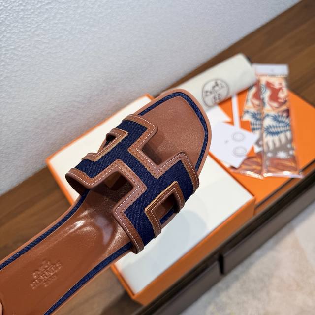 FFF 出厂价Pp: 随机赠送丝巾 DDD 品牌:Hermes DDD 颜色:经典全色系 DDD 编号:H8018-8 DDD 跟高:1Cm DDD 码数:35-40全码 34.42.42订做不退不换 DDD 鞋面材质:进口小牛皮牛仔布拼接鞋面 DDD 鞋底材质:真皮大底全透染 DDD Hermes爱马仕,有历史的代表作品,永恒经典款Oasis凉拖,居家出行两不误,上脚颜值超高 DDD 上脚非常舒服大方,大牌名明最爱的奢侈品,H系列拖鞋。 DDD 高档华丽的完美结合一体,为你展现出高贵不凡的人生魅力;配上