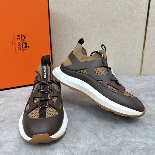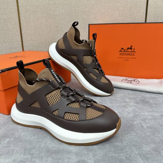 / 出厂价pp: H家新品 Hermè* 爱马-仕 Katana男士运动鞋 官方售价Rmb, 采用飞织面料+牛皮镂空, 运动时尚鞋面整圈头层小牛皮无断接大气奢华 定