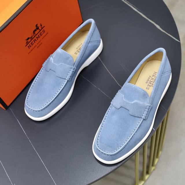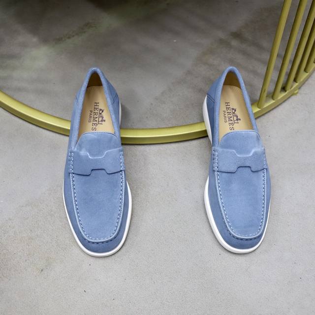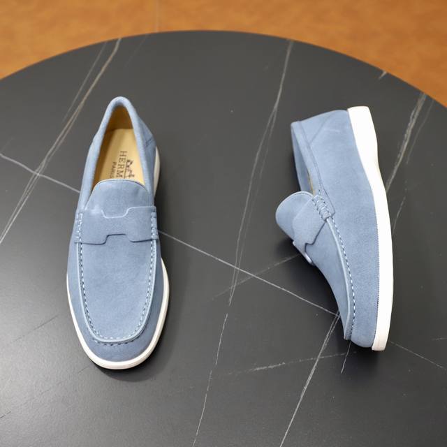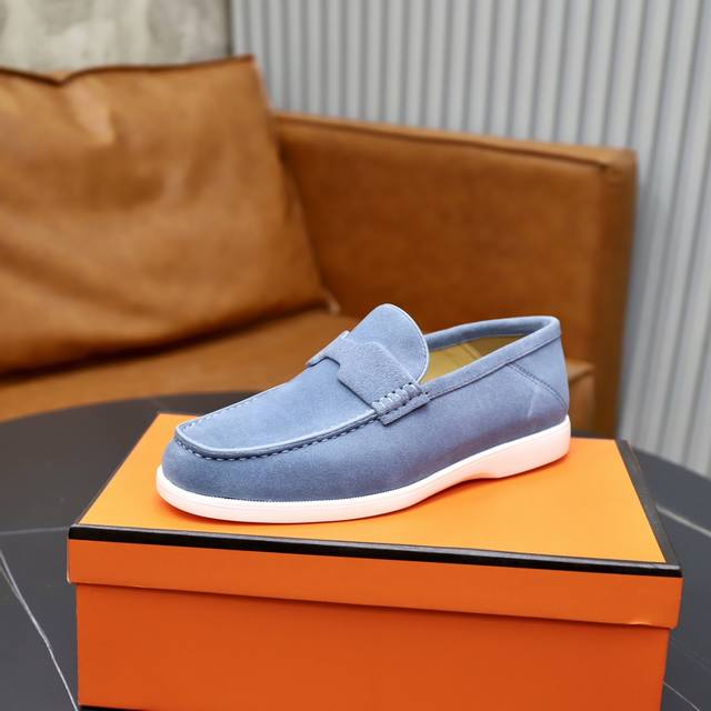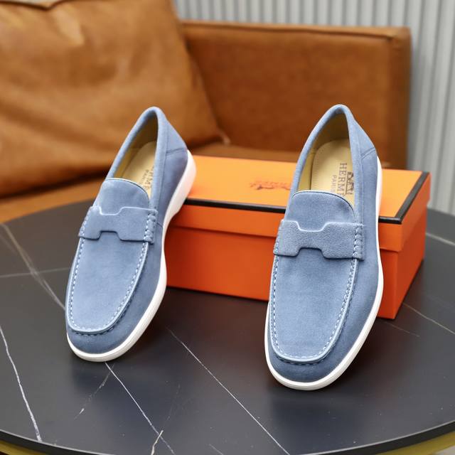 / 出厂价Pp: HermèS 爱马仕 套脚男鞋 DDD 这款鞋以进口牛反绒革制作、线条简约流畅,结合空气动力学设计 的3Cm橡胶发泡超轻鞋底!青春时尚,H纽扣装饰