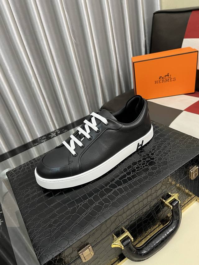 出厂价Pp: Herme* 爱马仕Bouncing小白鞋,男士休闲运动鞋,鞋面牛皮拼接高端网布打造,进口材质,质感十足,轻盈鞋底装饰撞色图案,打造百搭时尚风格。