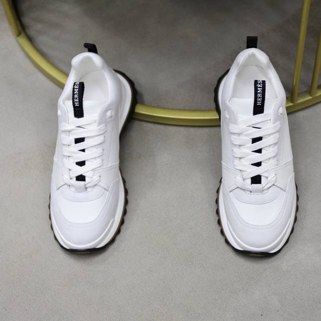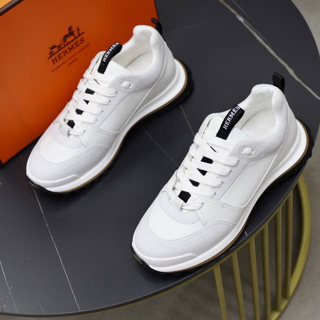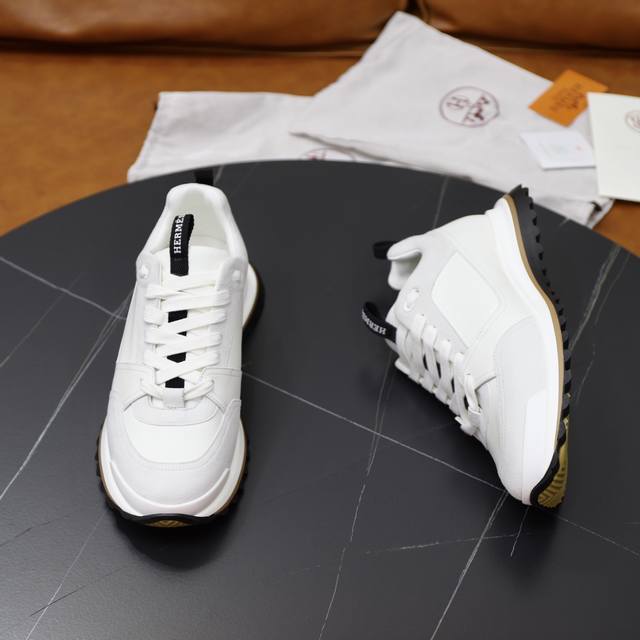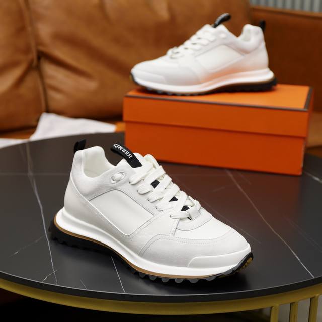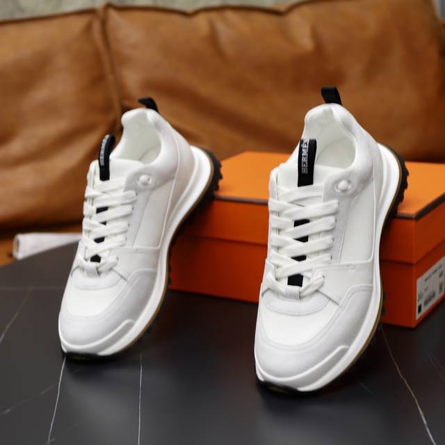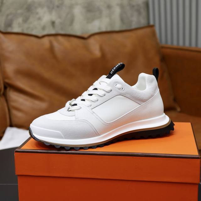 出厂价Pp: Hermes 爱马仕 Leader运动鞋! 多色拼接高科技斜纹、小牛皮和麂皮山羊皮运动鞋。轻盈几何鞋底,打造时尚都市造型。 产品详情: 白色和橙色橡胶鞋底 黑色橡胶鞋底,橙色橡胶嵌饰浅自然色皮革嵌饰白色橡胶鞋头 牛皮垫脚 网布 内底和内衬 棉质饰带,橡胶字样 鞋底高度:4Cm 尺码:39-40-41-42-43-44 38.45订做