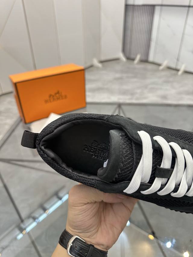 Herme* 爱马仕Bouncing运动鞋,男士休闲运动鞋,鞋面牛皮网面水洗羊里!质感十足,轻盈鞋底装饰撞色图案,打造百搭时尚风格。...
