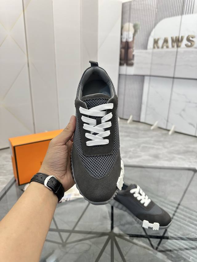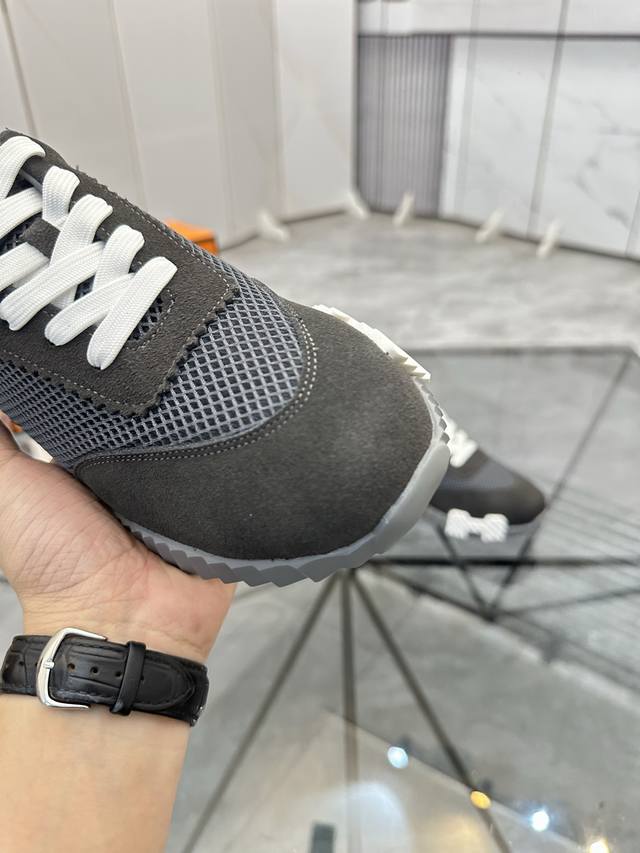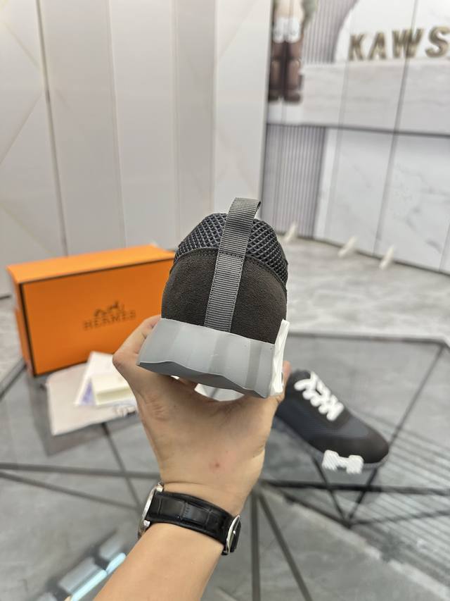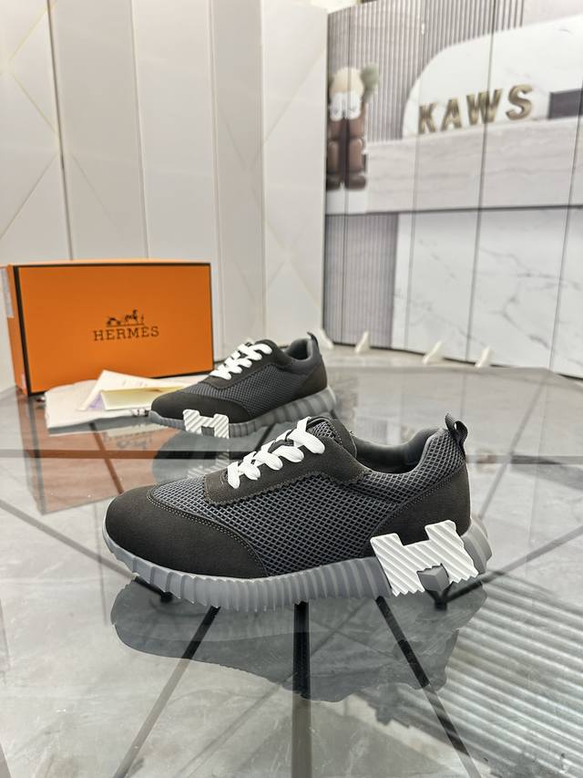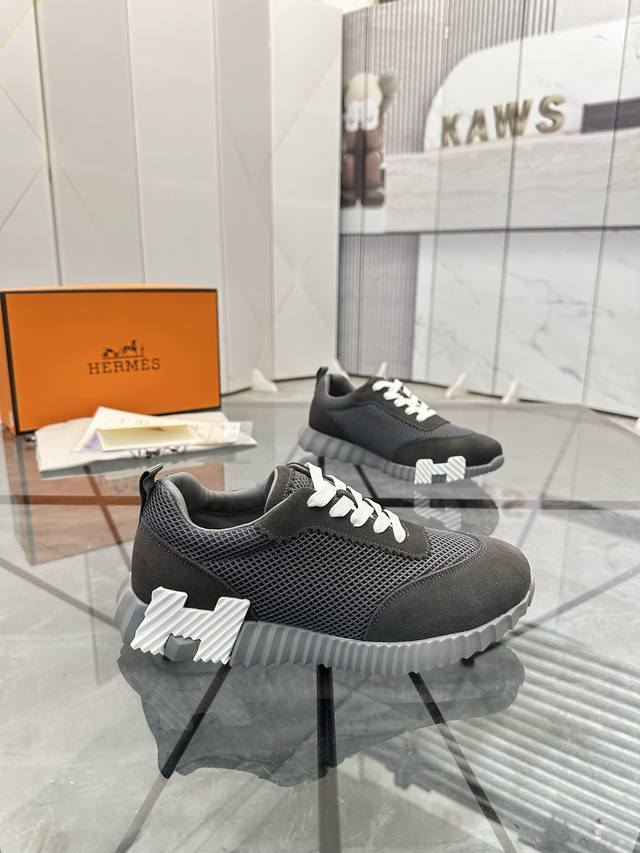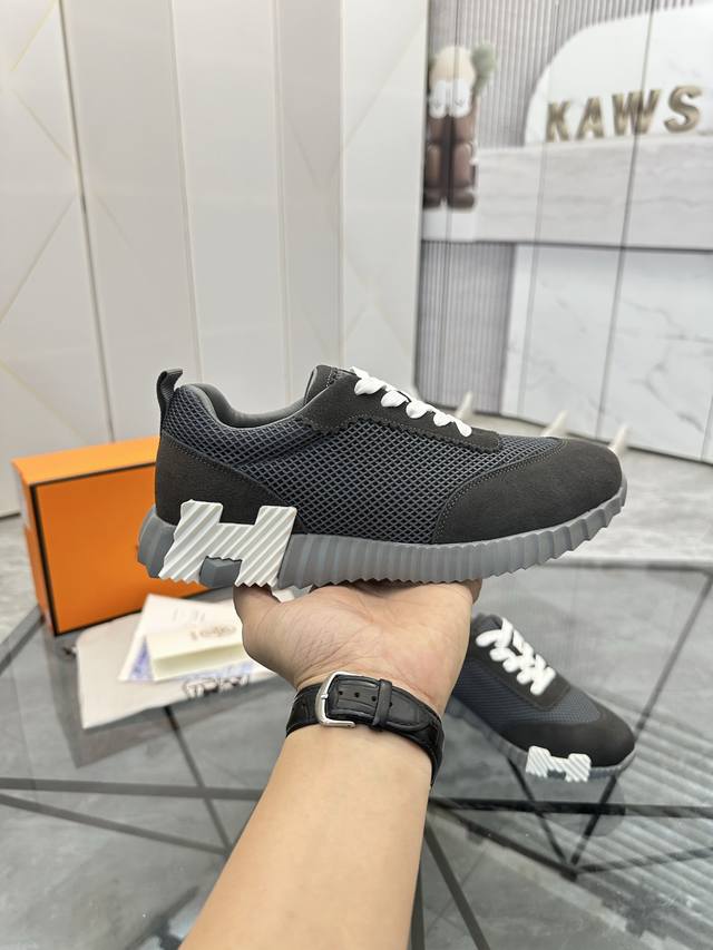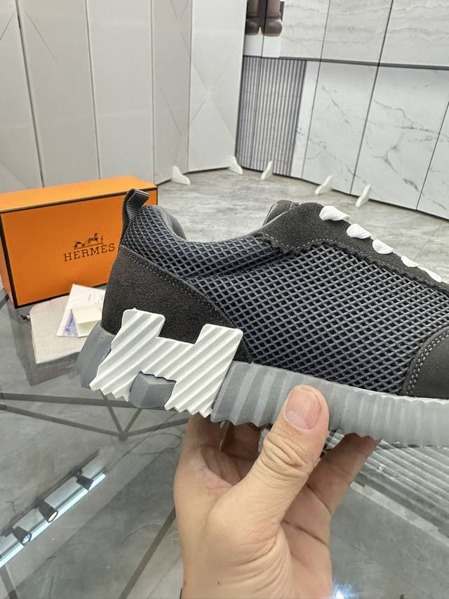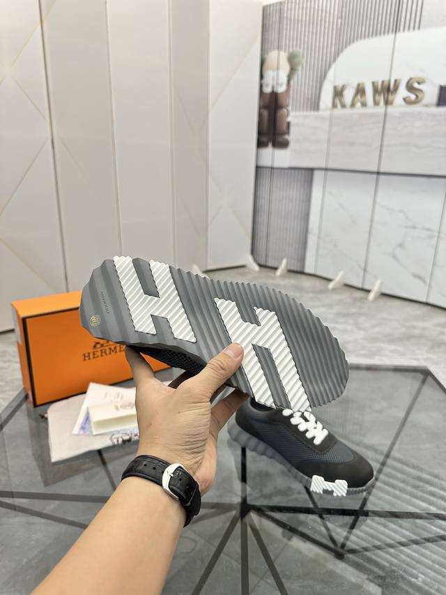 Herme* 爱马仕Bouncing运动鞋,男士休闲运动鞋,鞋面牛皮网面水洗羊里!质感十足,轻盈鞋底装饰撞色图案,打造百搭时尚风格。...