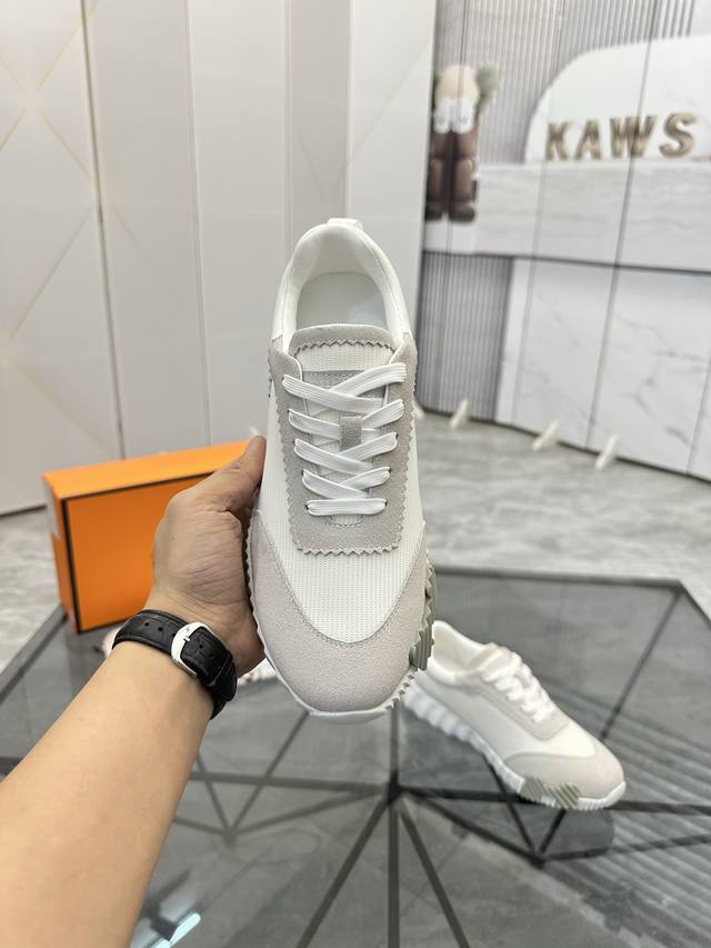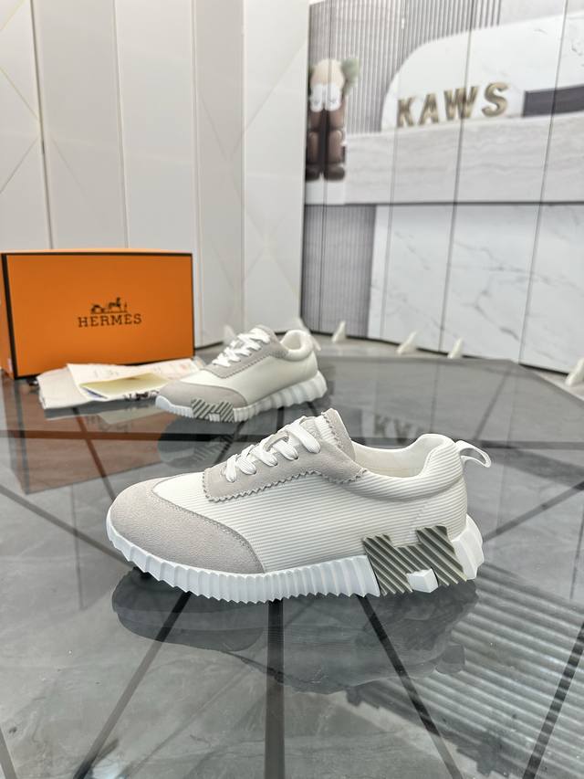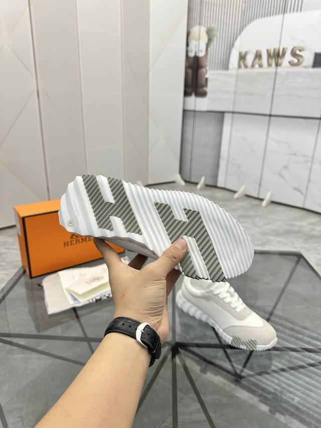 Herme* 爱马仕Bouncing运动鞋,男士休闲运动鞋,鞋面牛皮水洗羊里!质感十足,轻盈鞋底装饰撞色图案,打造百搭时尚风格。...