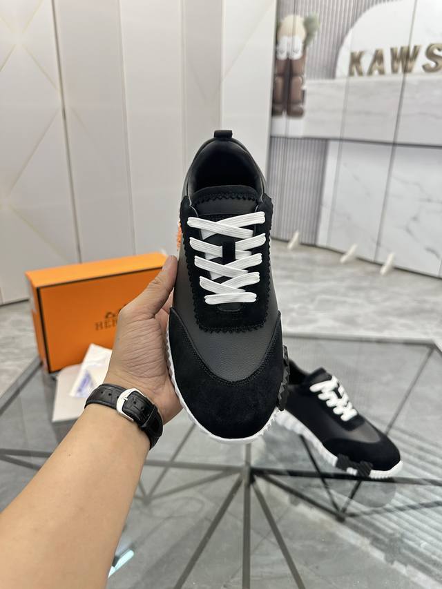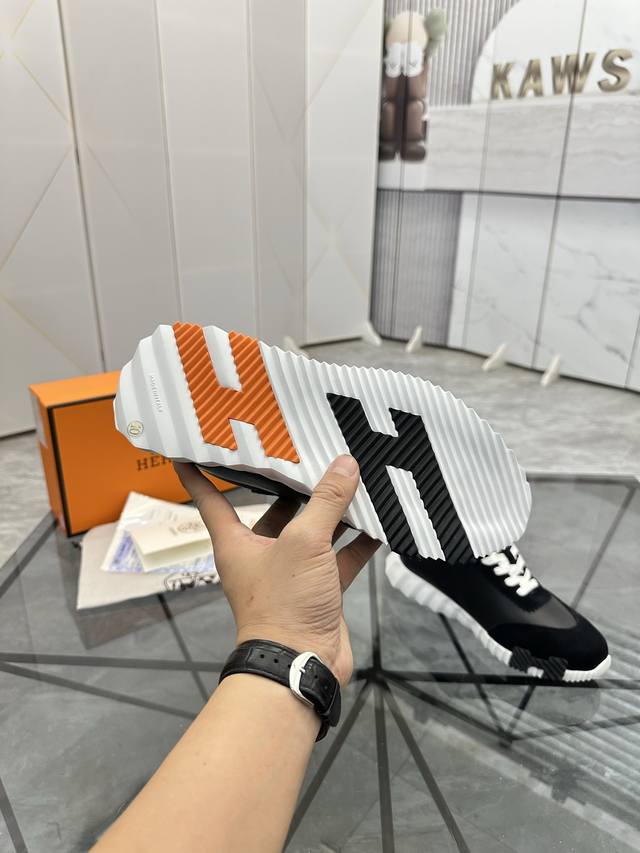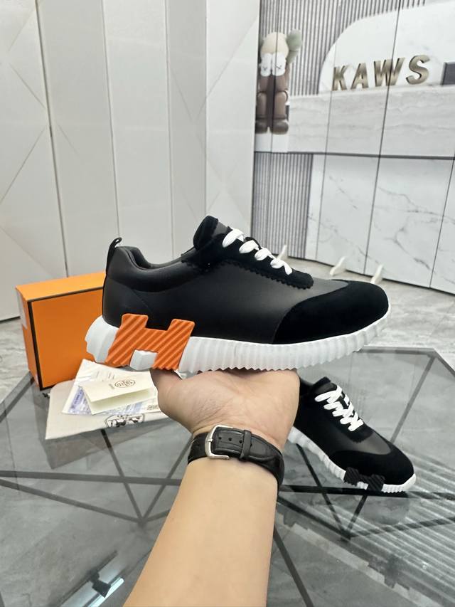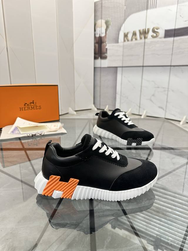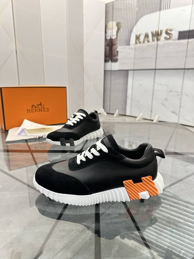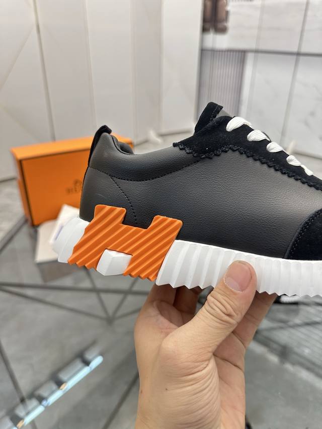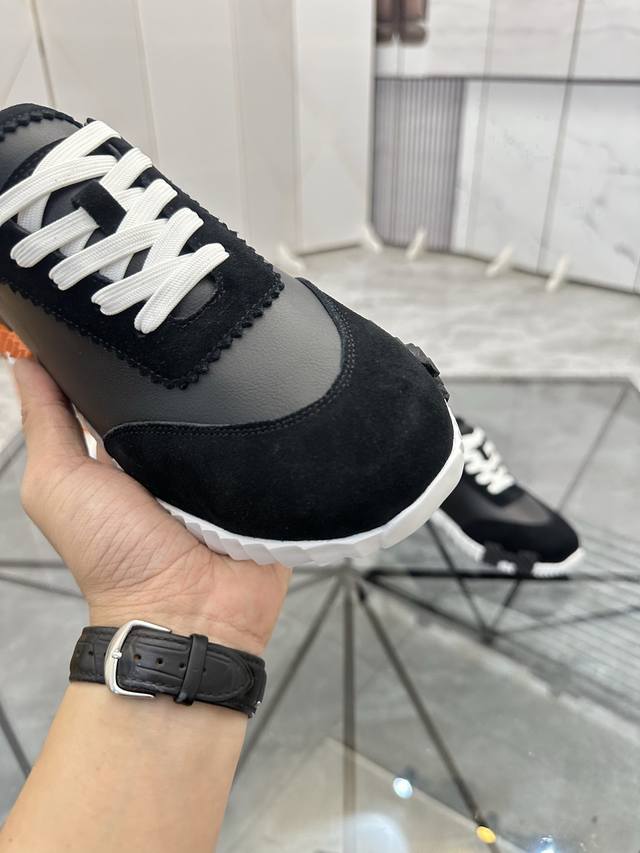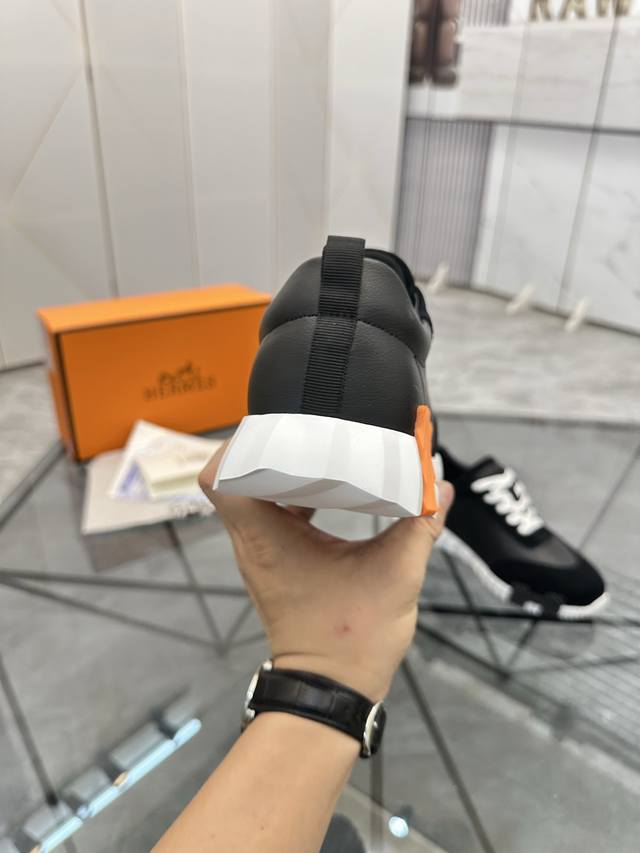 H爱马仕运动鞋 男士休闲运动鞋 鞋面小牛皮拼接打造 舒适透气羊里 质感十足 轻盈鞋底装饰撞色图案 打造百搭时尚风格 Size 38-44...