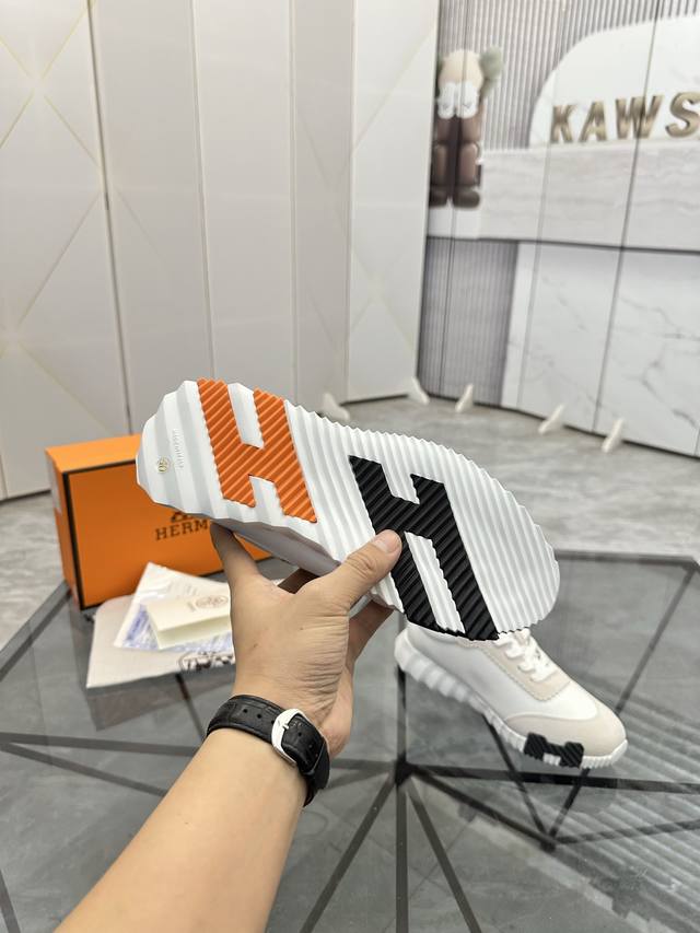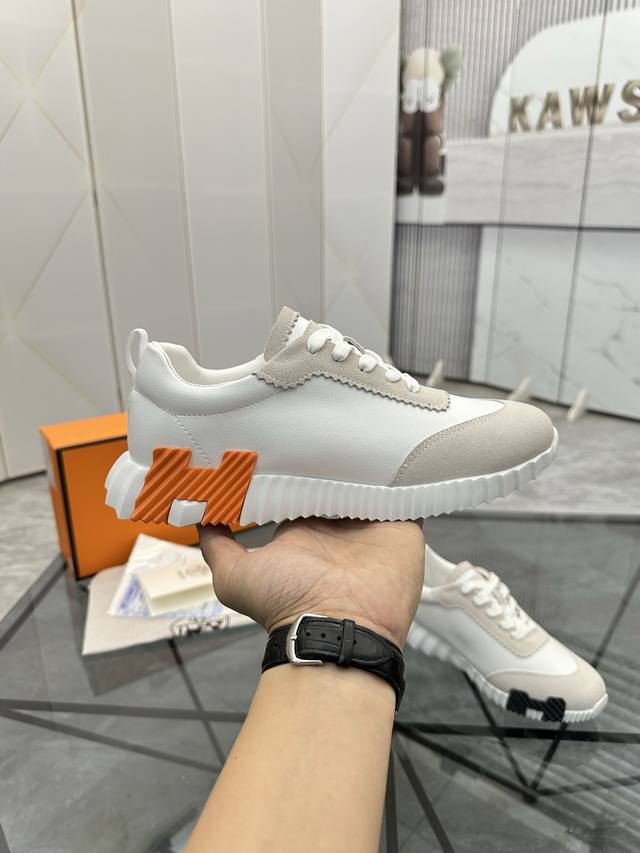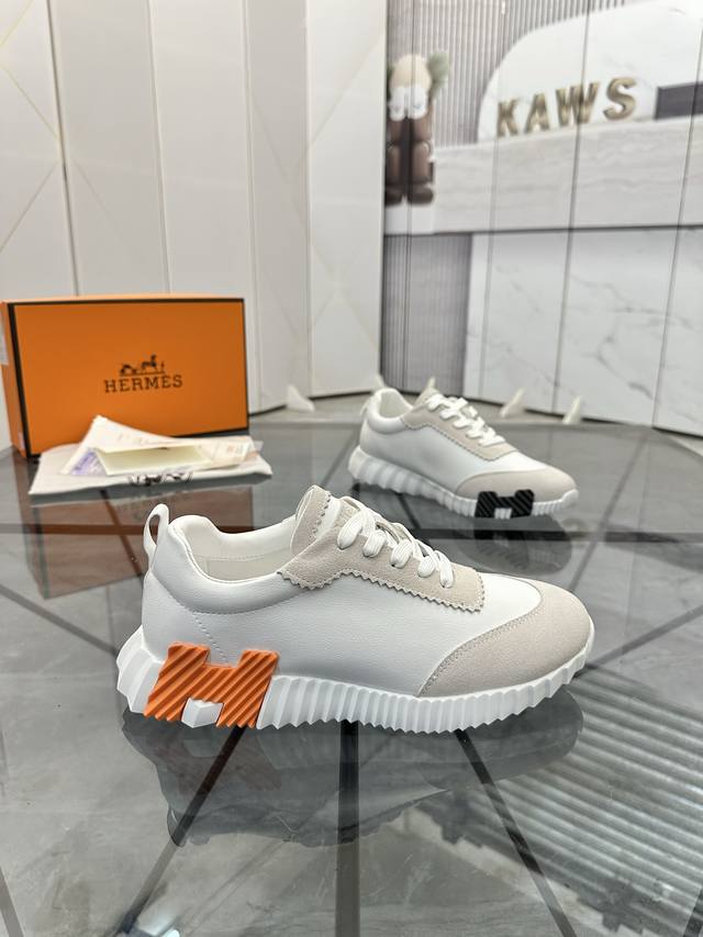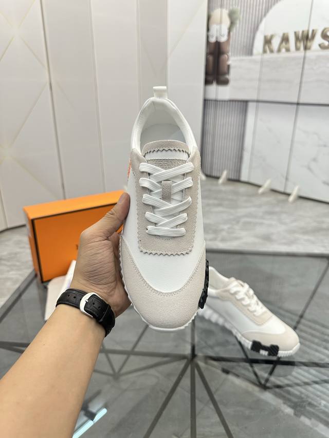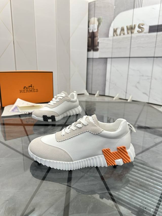pp Hermes 爱马仕 男士拼色运动鞋 富有质感的小牛皮细节 拼接原版牛皮面 此鞋款从马术世界汲取灵感...