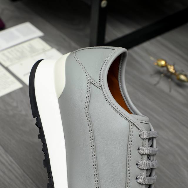 工厂P价 Hermes 爱马仕 Leader运动鞋! 多色拼接高科技斜纹、小牛皮和麂皮山羊皮运动鞋。轻盈几何鞋底,打造时尚都市造型。...
