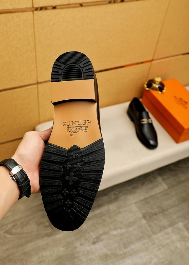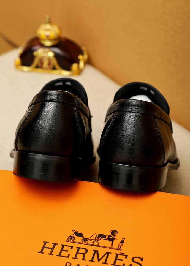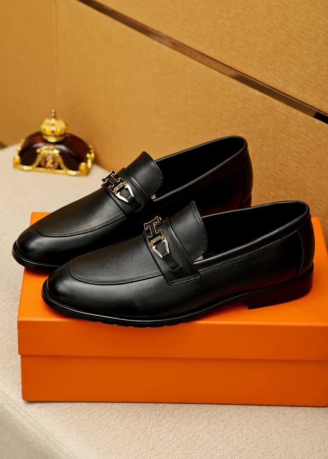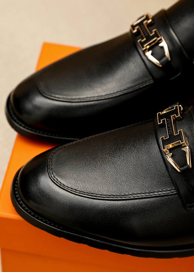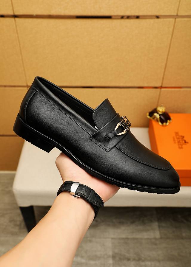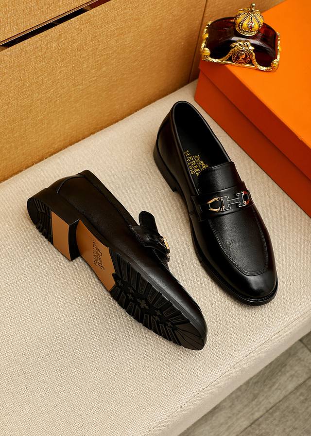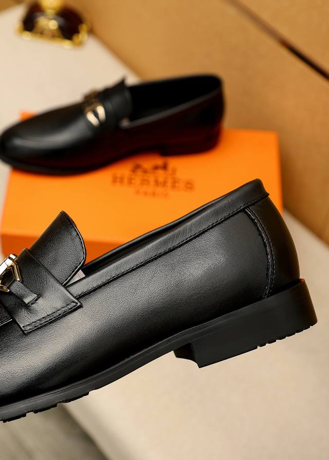 / 商品商标:Hermes 爱马仕 休闲皮鞋 正码码数: 38-44 45.46订制 商品材料:精选 进口头层小牛皮鞋面+奢华五金扣,进口水染牛皮内里。强烈立体视觉