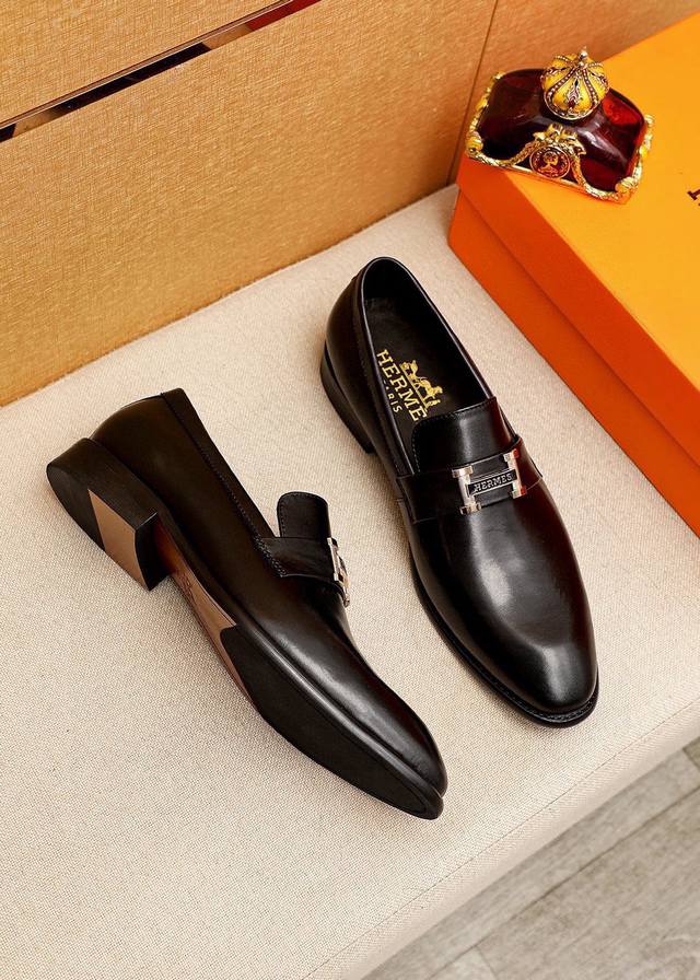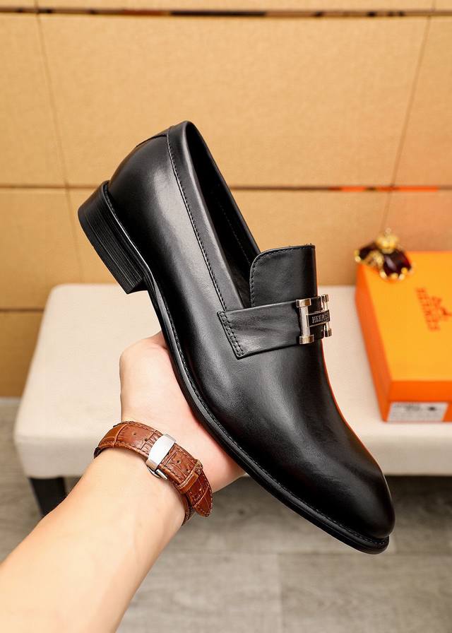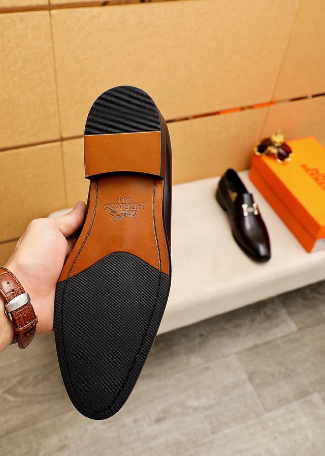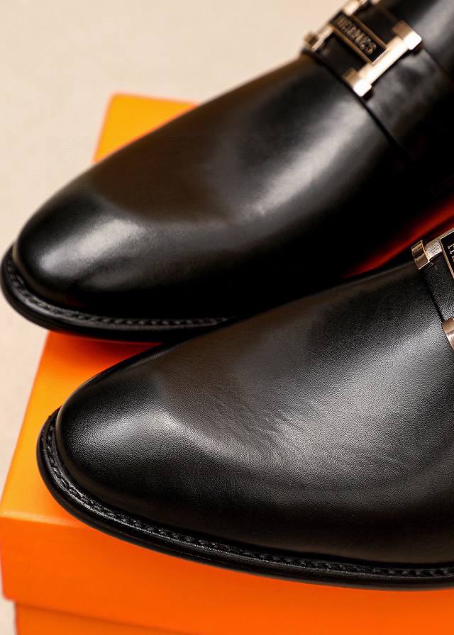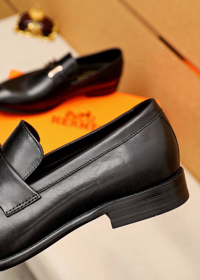 / 商品商标:Hermes 爱马仕 休闲皮鞋 正码码数: 39-44 38.45.46订制 商品材料:精选 进口头层小牛皮鞋面+经典五金扣,进口水染牛皮内里。强烈立