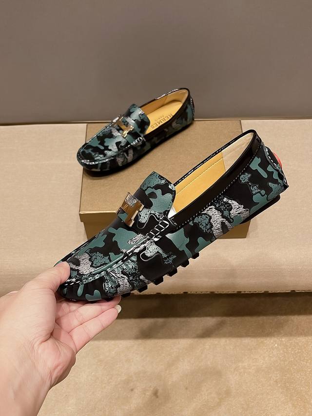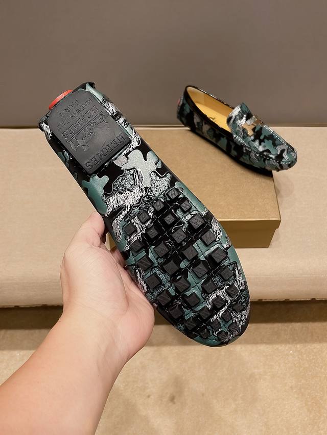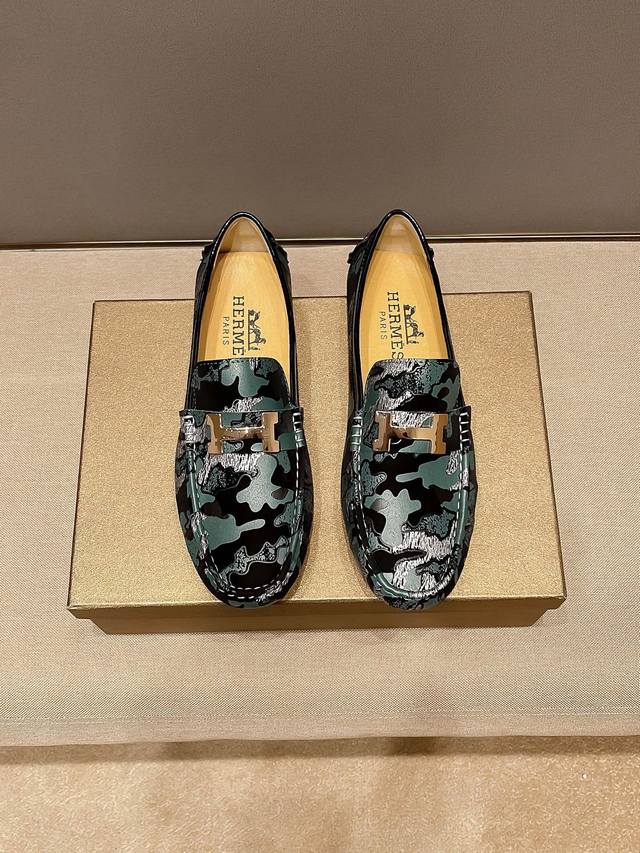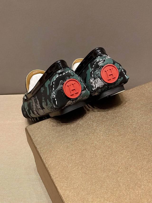 / 官方新款+爆款,品牌Hemes 爱马仕 套脚船,鞋胡歌同款哦 奢华 低调有内涵, 原版牛皮,舒适透气,配合牛里透气拒绝掉色真才实料、延续了爱马仕所坚持不懈了百年