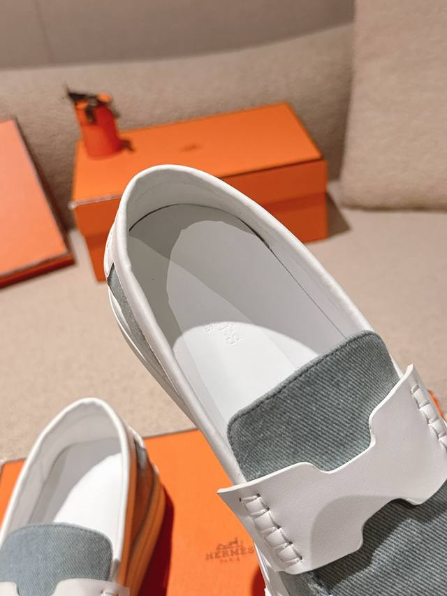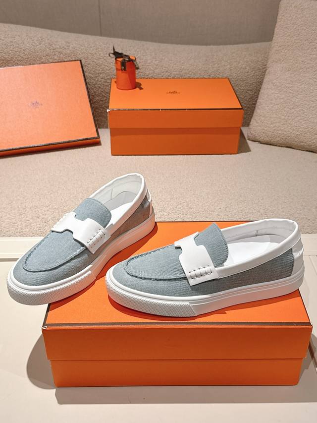 实价不让利 !Hermes# 厚底情侣乐福鞋 这款小牛皮和水洗牛仔免系带运动鞋,饰有标志性“H”细节。设计简约流畅,打造时尚都市造型 舒适百搭 H家经典不过时