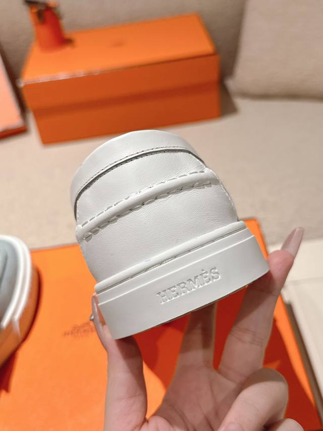 / 实价不让利 !Hermes# 厚底情侣乐福鞋 这款小牛皮和水洗牛仔免系带运动鞋,饰有标志性“H”细节。设计简约流畅,打造时尚都市造型 舒适百搭 H家经典不过时