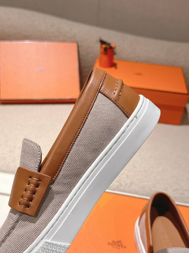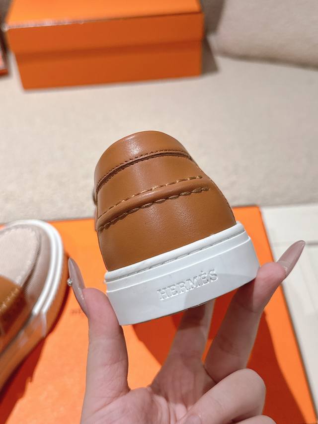 hermes 爱马仕 -高端品质 原单休闲运动鞋 -鞋面:纳帕小牛皮、反绒小牛皮、品牌高丝光帆布、鞋身车缝品牌“H”图腾...