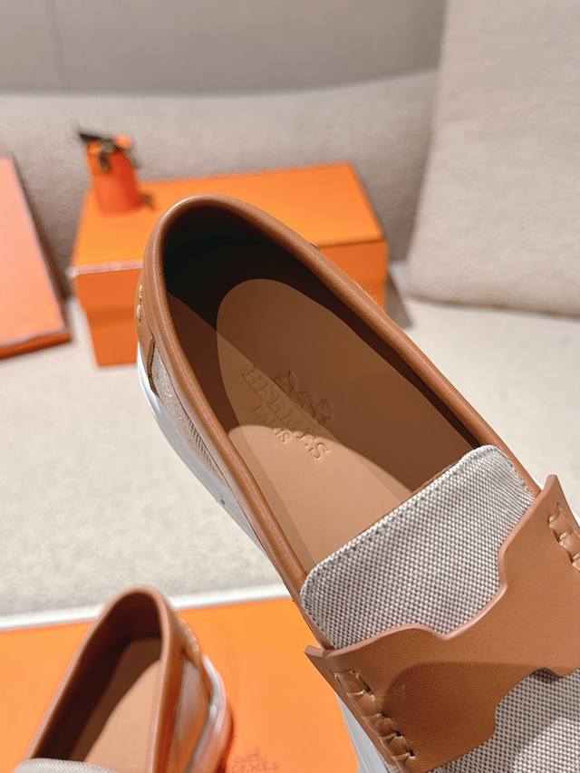 实价不让利 !Hermes# 厚底情侣乐福鞋 这款小牛皮和水洗牛仔免系带运动鞋,饰有标志性“H”细节。设计简约流畅,打造时尚都市造型 舒适百搭 H家经典不过时